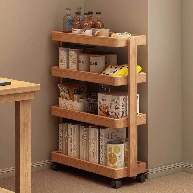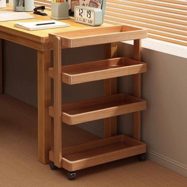實木沙發旁置物架 小推車落地書架 廚房窄縫櫃帶輪可移動零食收納架