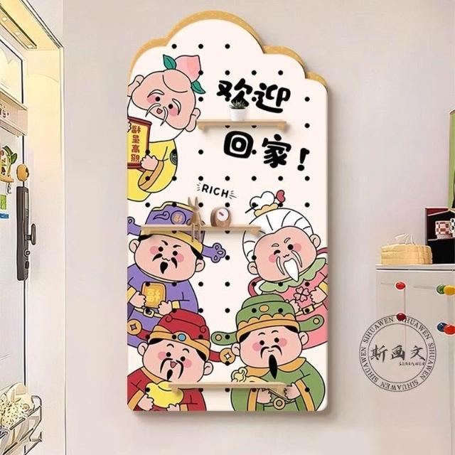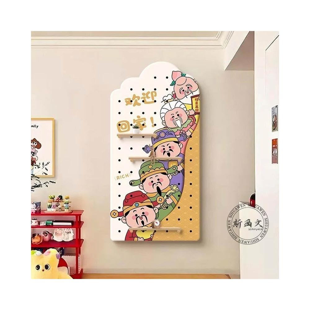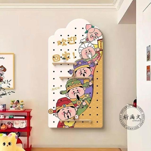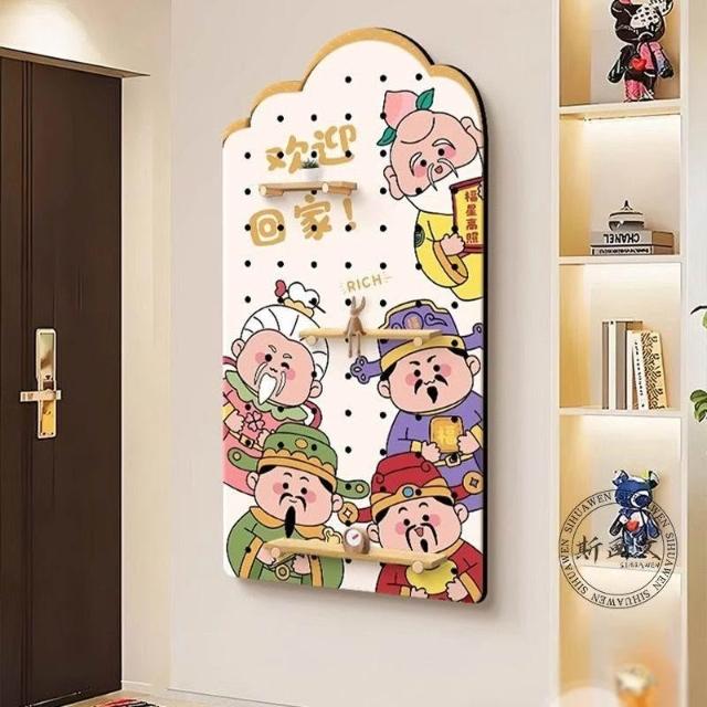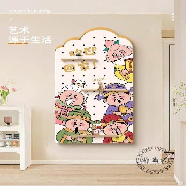洞洞板 墻上置物架 洞洞板置物架 財神爺洞洞板 入戶玄關裝飾畫進門正對墻掛畫歡迎回家置物架