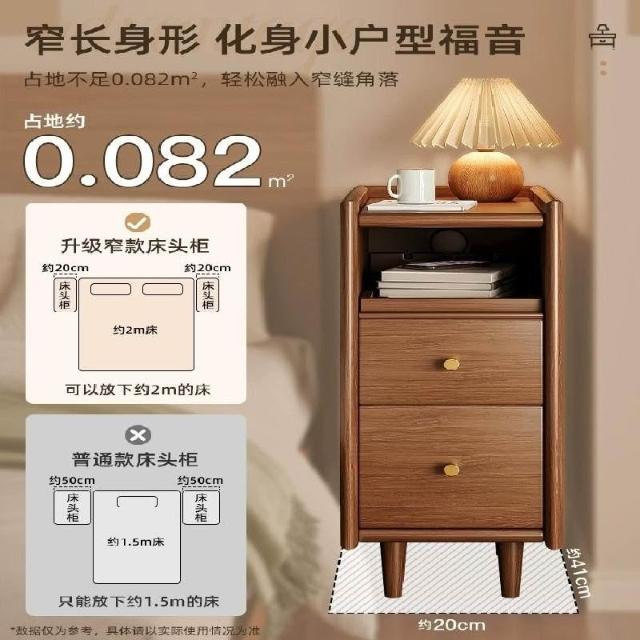 限時下殺 全實木床頭櫃 窄小型迷你20公分床邊夾縫櫃 20cm臥室胡桃床頭置物櫃