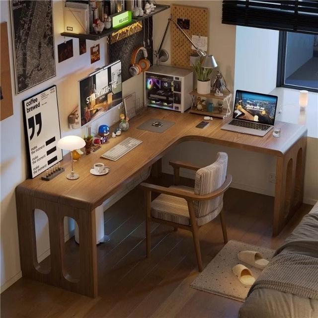 限時下殺 可客製 實木轉角桌 l型書桌 拐角書桌 房間臥室雙人電腦桌 簡約單人學習桌