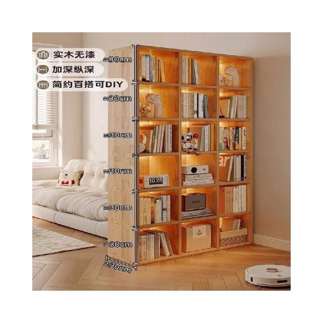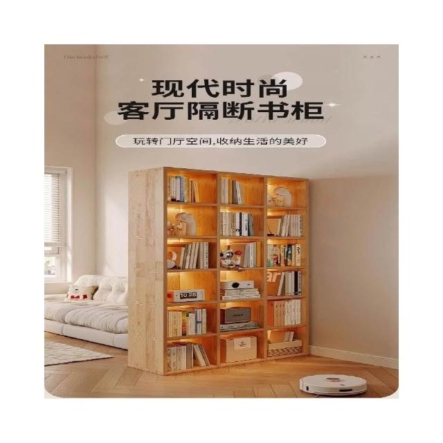 原木風客廳隔斷櫃雙面書架玄關櫃實木書櫃 格子櫃 儲物收納櫃 展示邊櫃