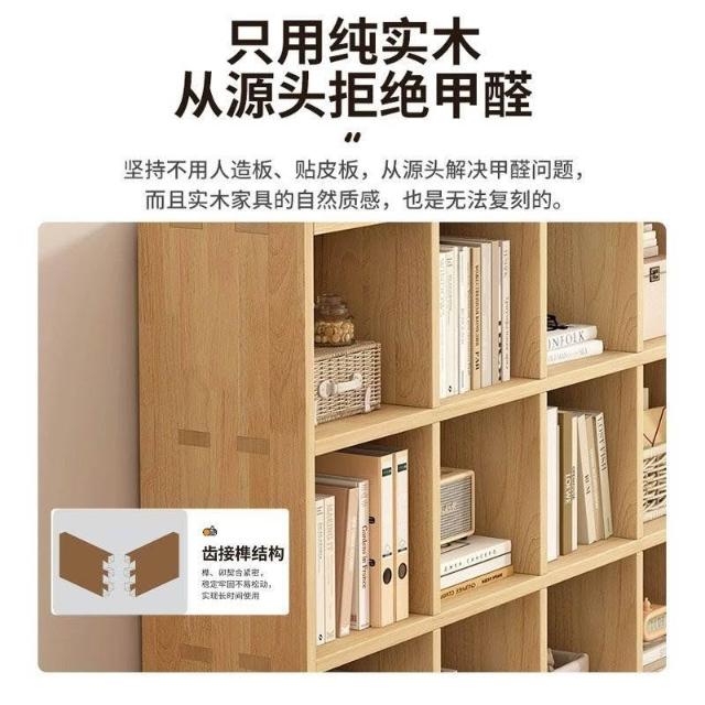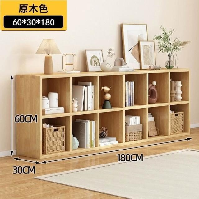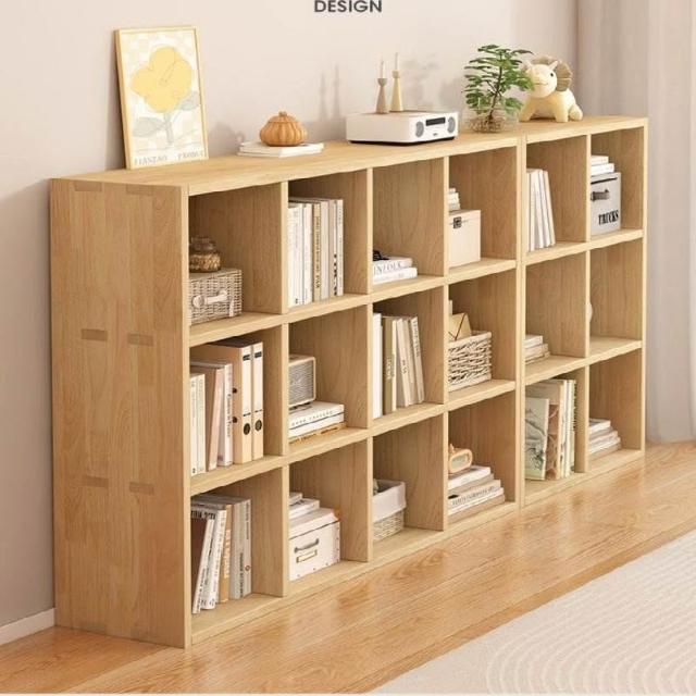 實木方格書架 置物架 落地靠墻組合客廳儲物收納書櫃