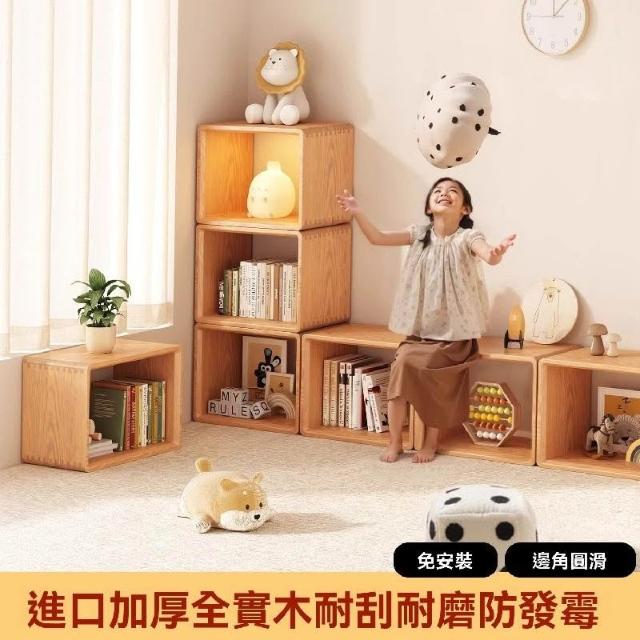 可自由組合 實木格子柜 自由組合落地書架 單格置物架 收納展示櫃 創意書櫃