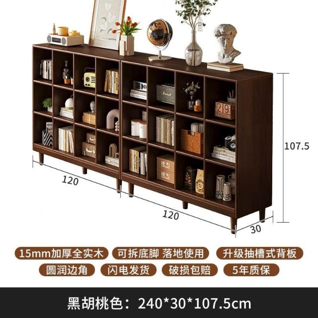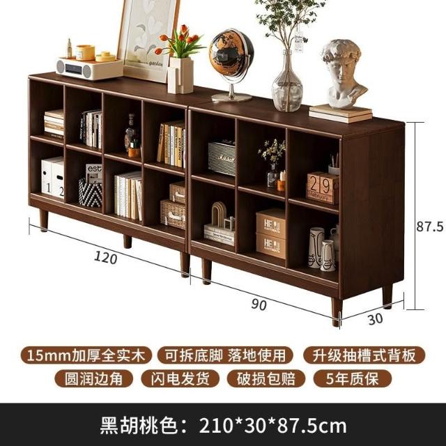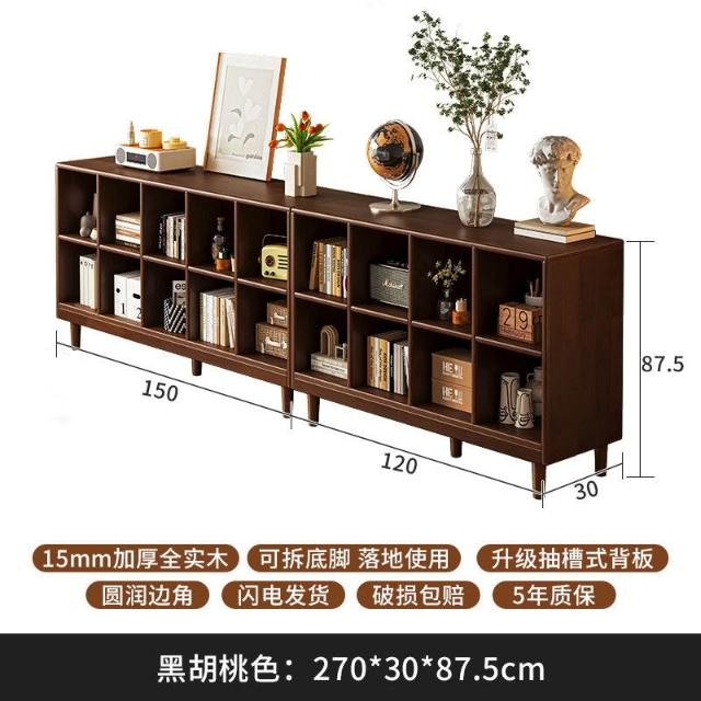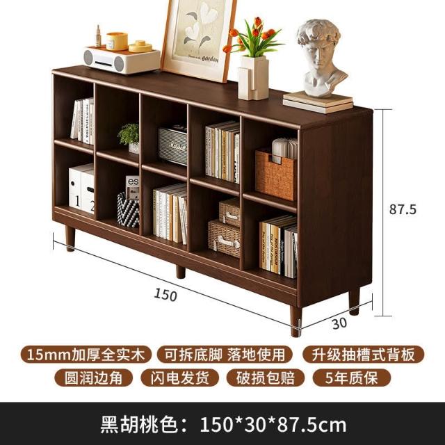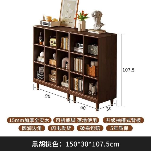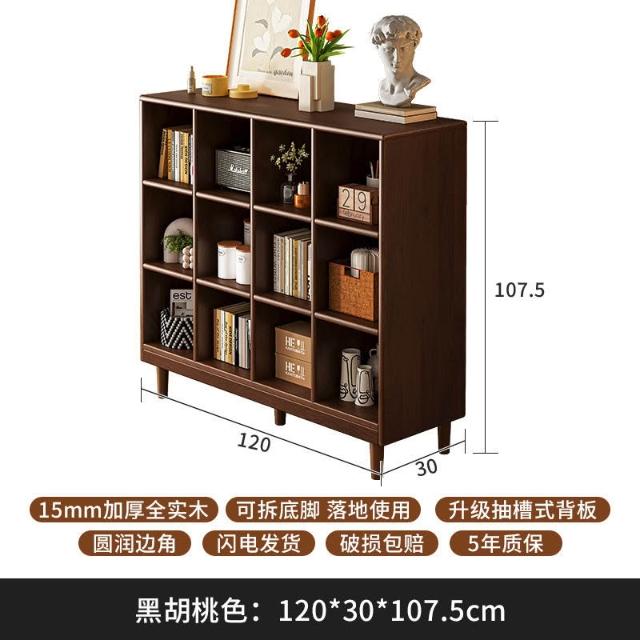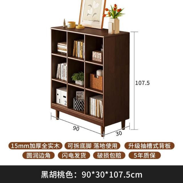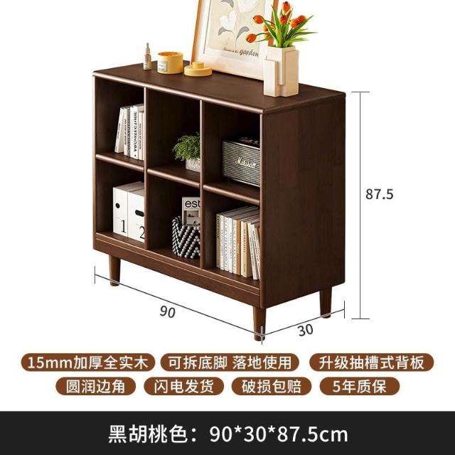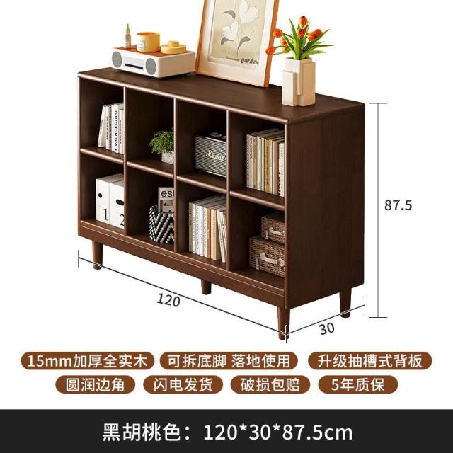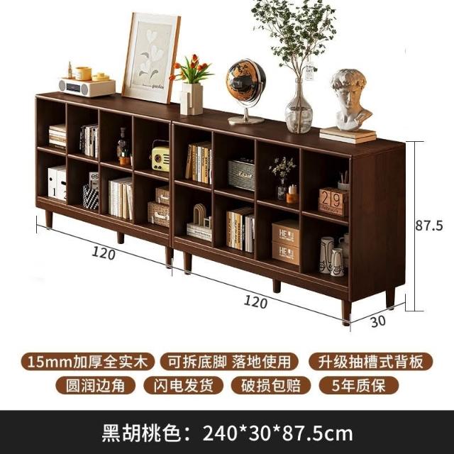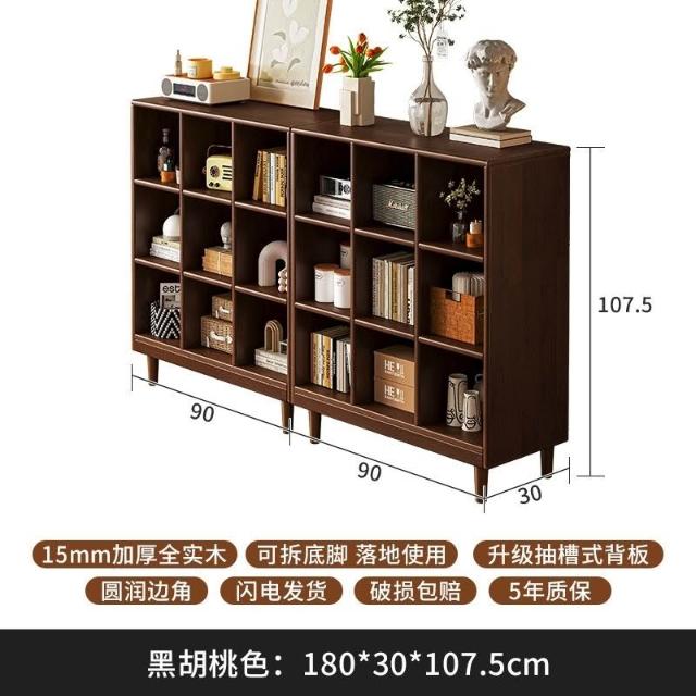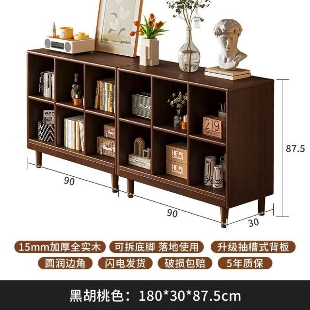 全實木書架 胡桃木色格子櫃 置物架 落地客廳矮柜 柜子 儲物柜 一體書櫃