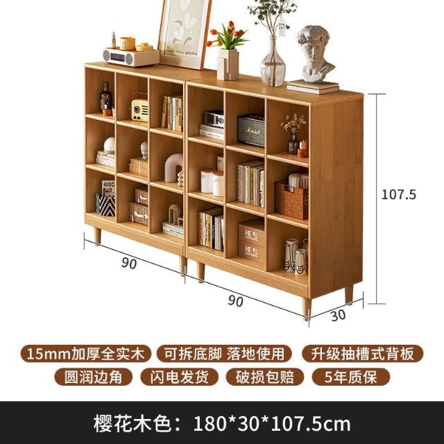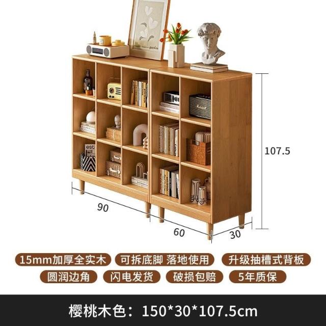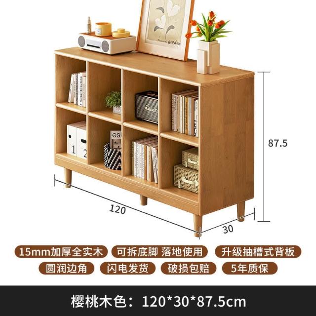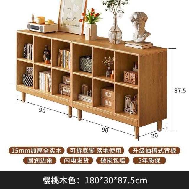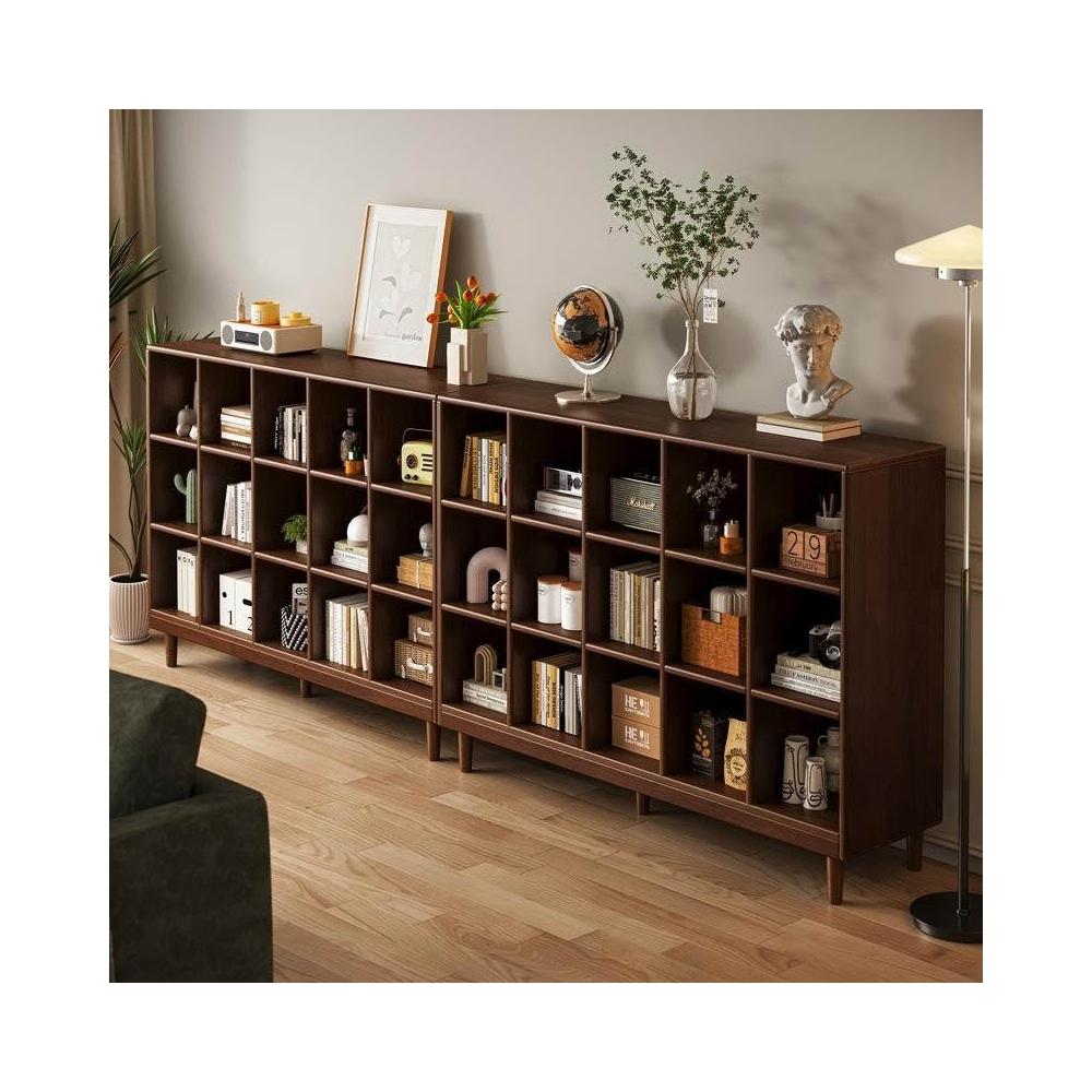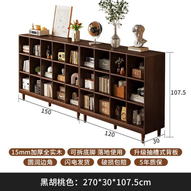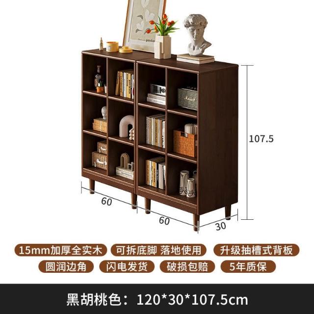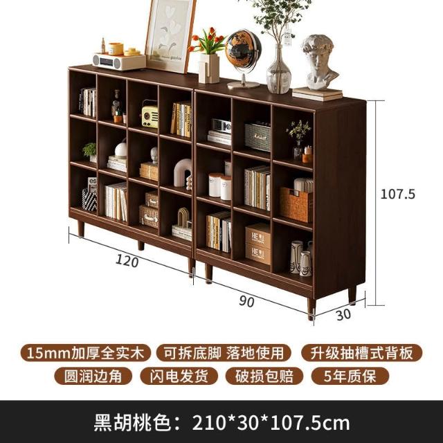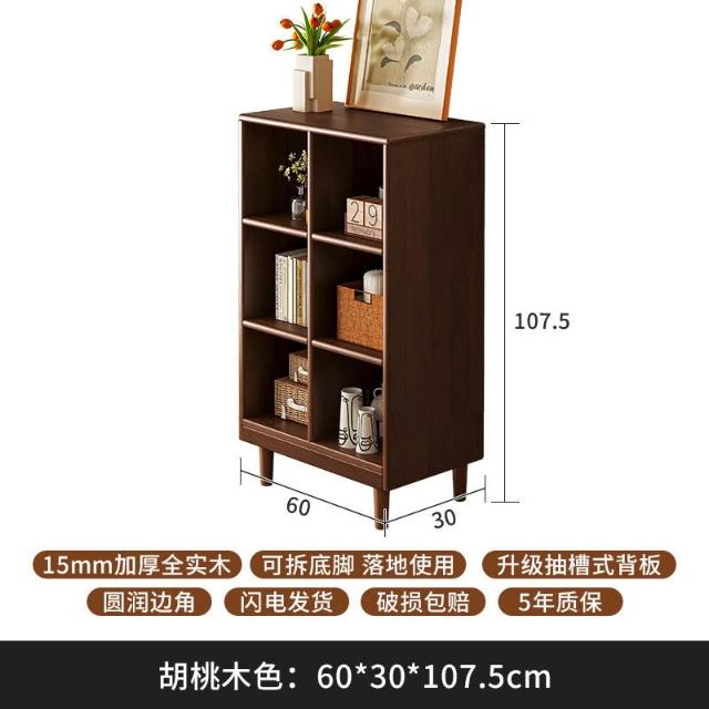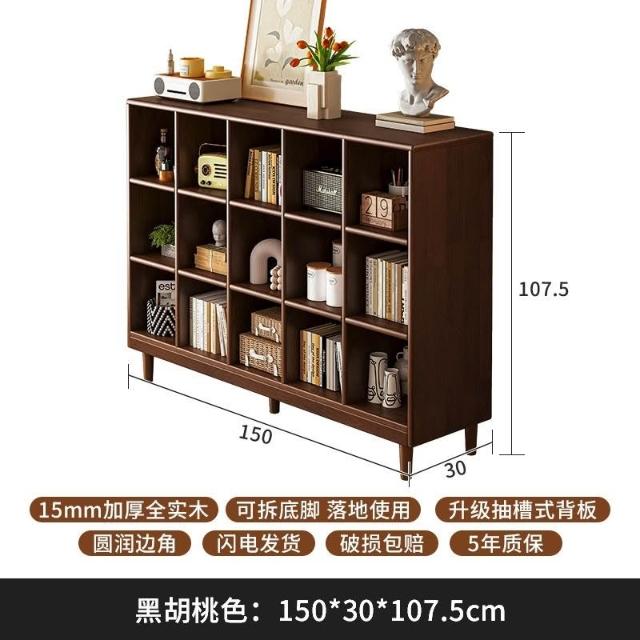 全實木書架 胡桃木色格子櫃 置物架 落地客廳矮柜 柜子 儲物柜 一體書櫃