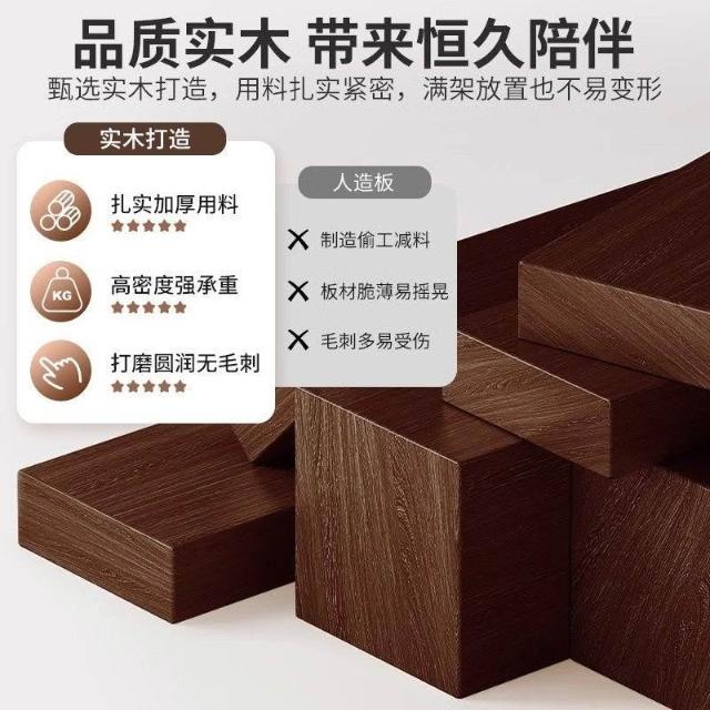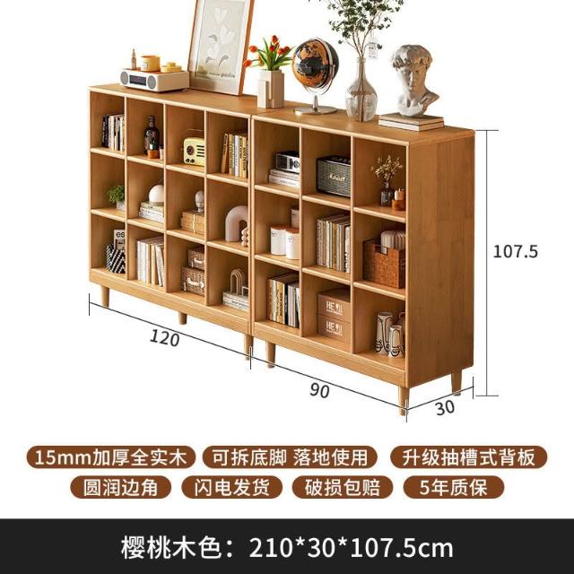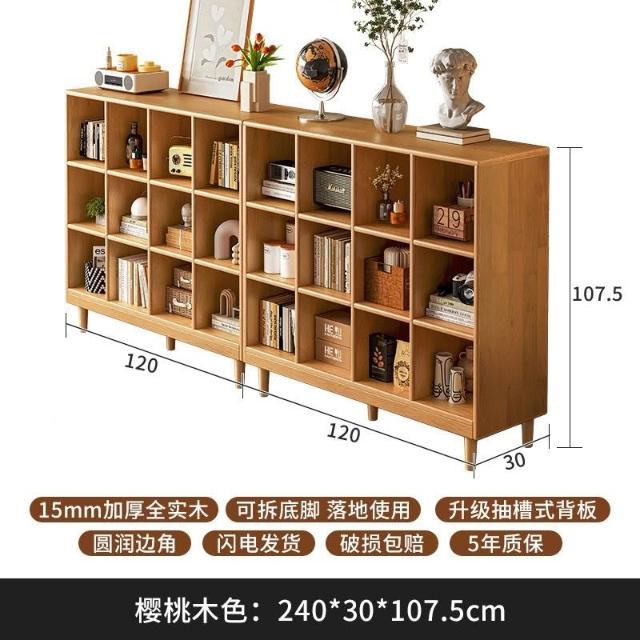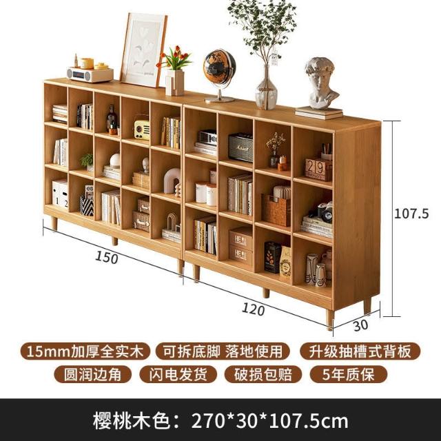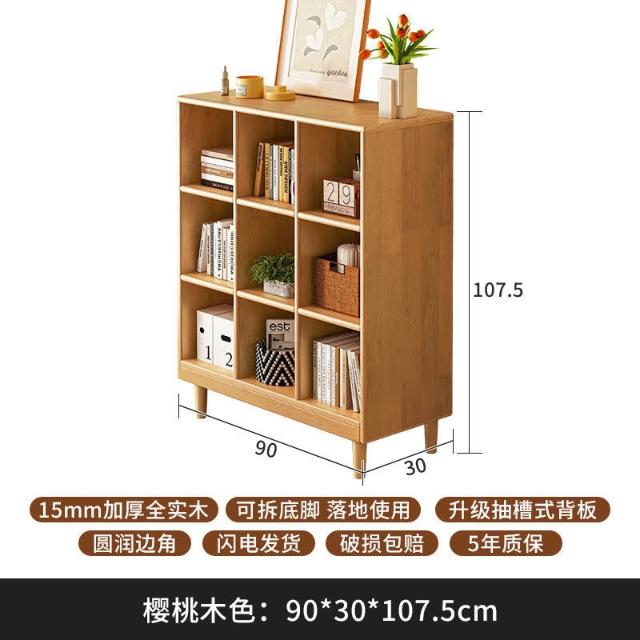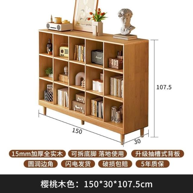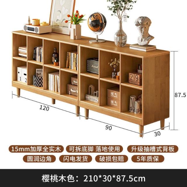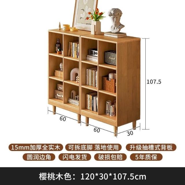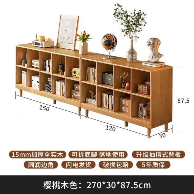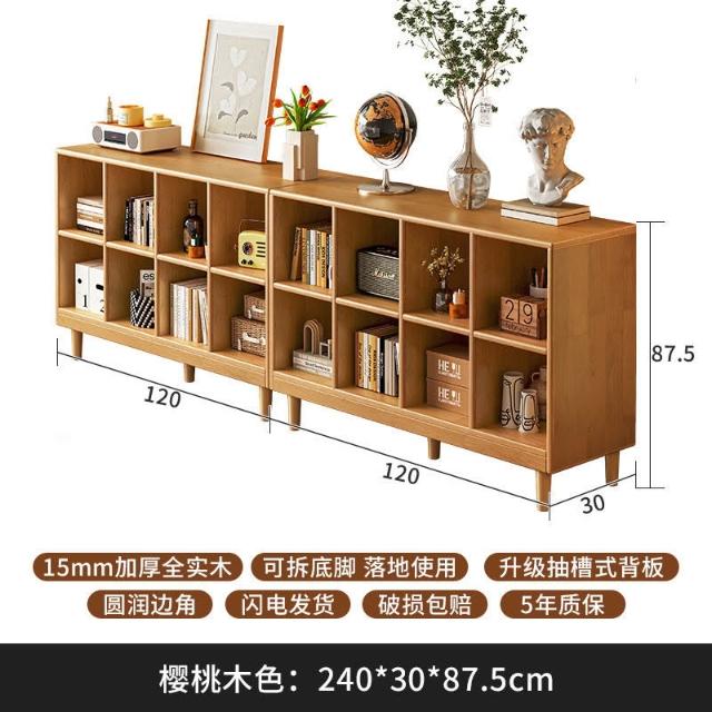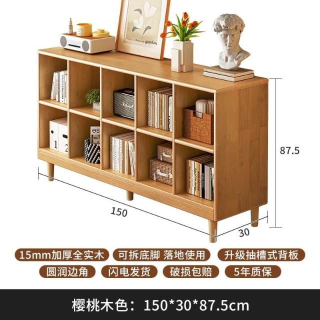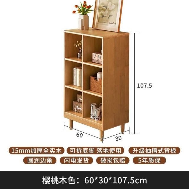 全實木書架 胡桃木色格子櫃 置物架 落地客廳矮柜 柜子 儲物柜 一體書櫃