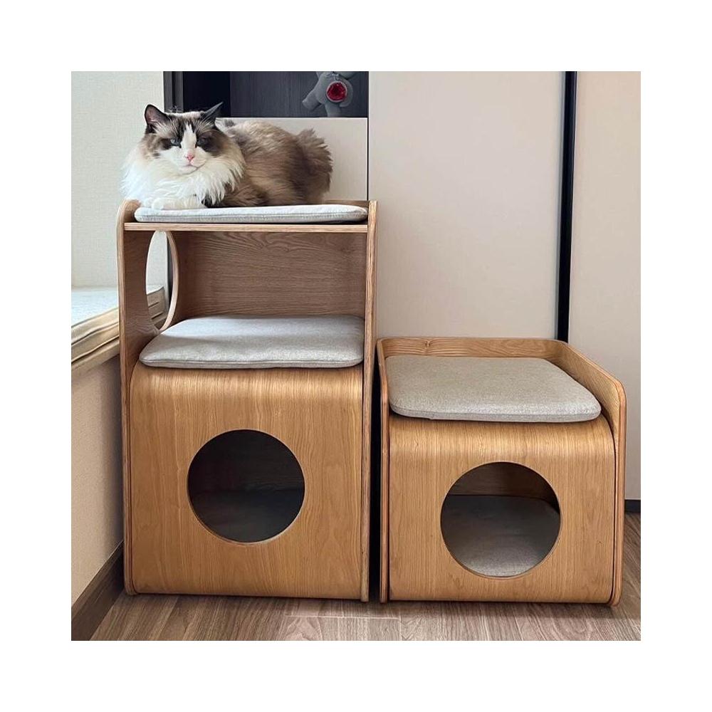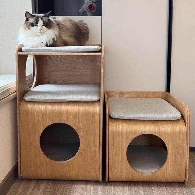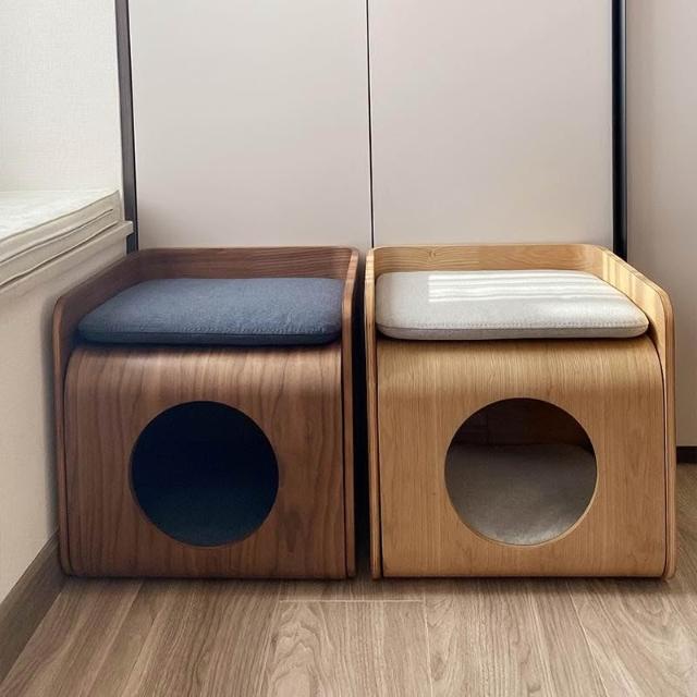 家居貓窩茶几 茶桌 四季通用實木人寵共用床頭櫃寵物別墅沙發邊幾