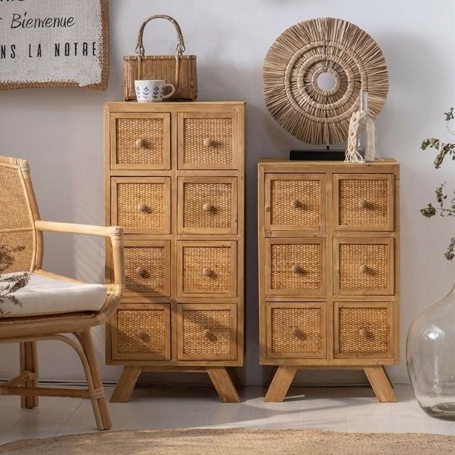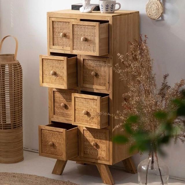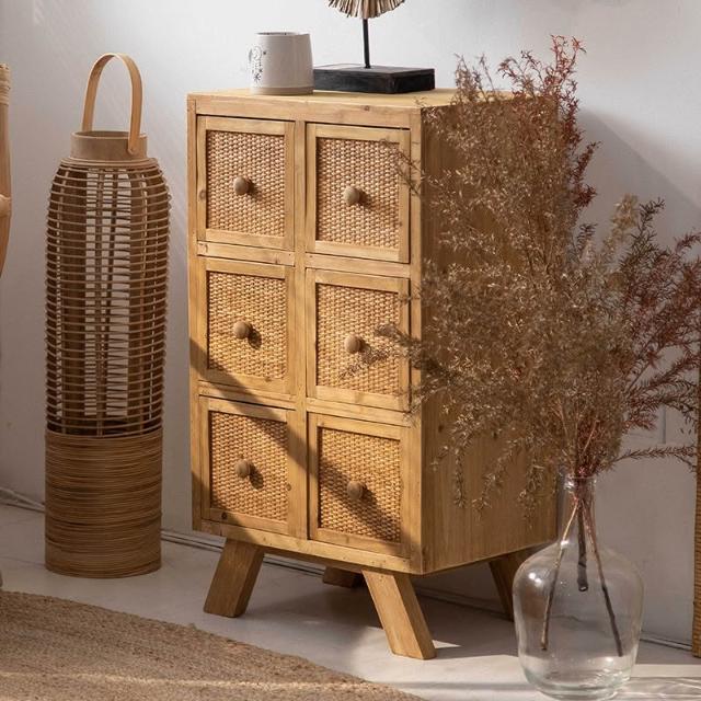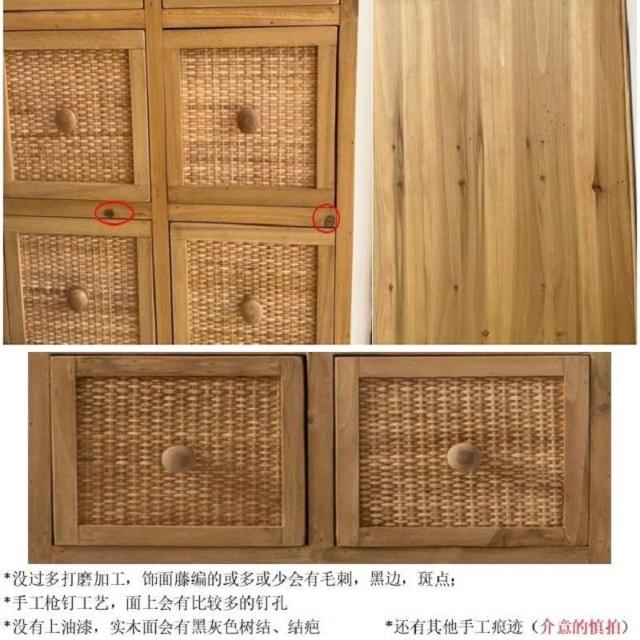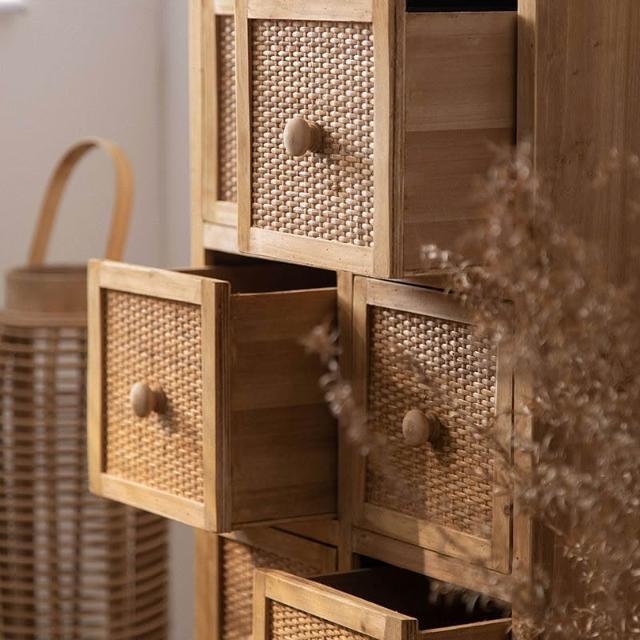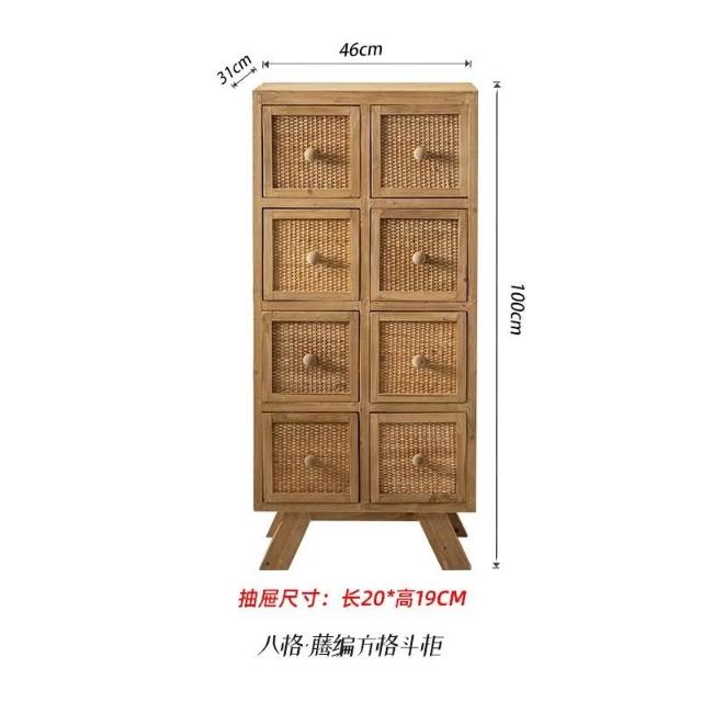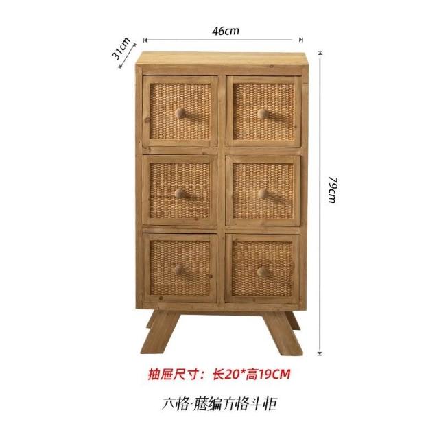 藤編田園風收納櫃 儲物櫃 客廳家用餐邊櫃 抽屜櫃 可移動實木方格鬥櫃