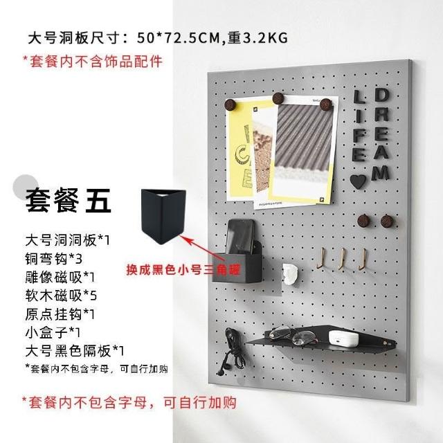 免運 可客製 金屬鐵藝高級灰洞洞板 高顏值免打孔洞洞板 定製玄關書房洞洞板