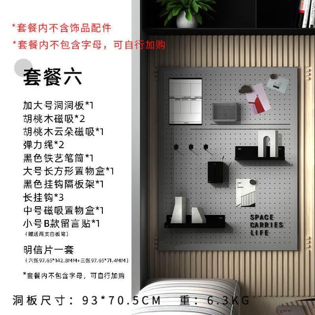 免運 可客製 金屬鐵藝高級灰洞洞板 高顏值免打孔洞洞板 定製玄關書房洞洞板