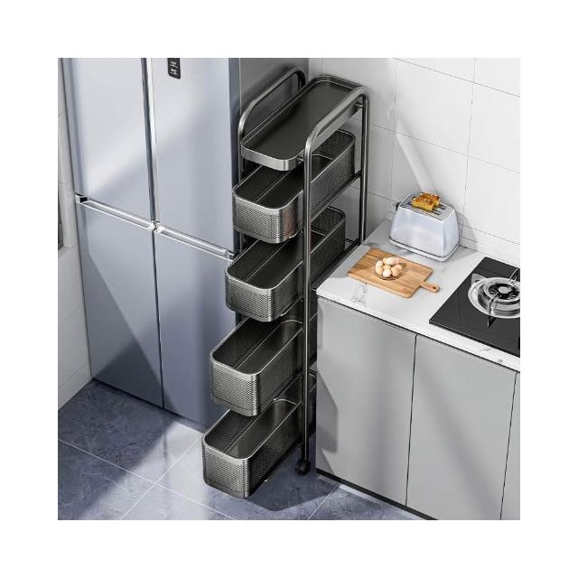 廚房夾縫置物架 窄邊柜 冰箱側面抽拉櫃衛生間小推車極窄縫拉籃縫隙收納櫃