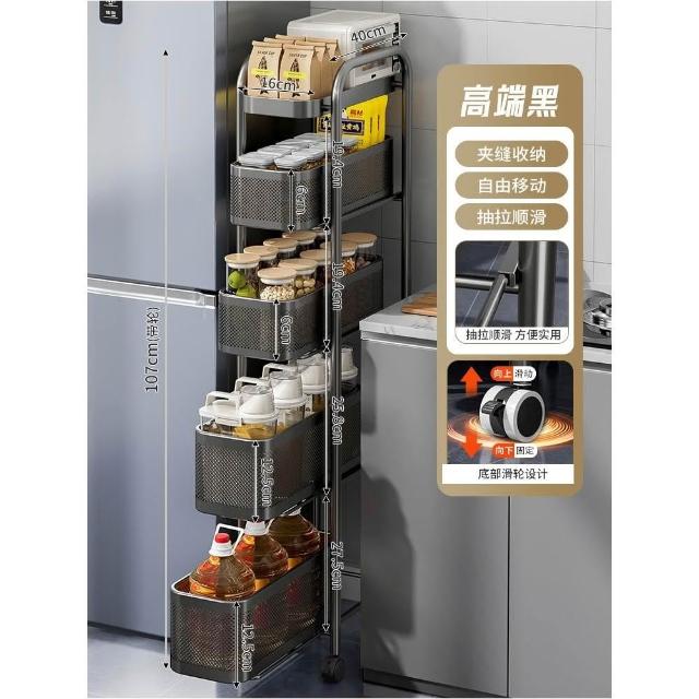 廚房夾縫置物架 窄邊柜 冰箱側面抽拉櫃衛生間小推車極窄縫拉籃縫隙收納櫃