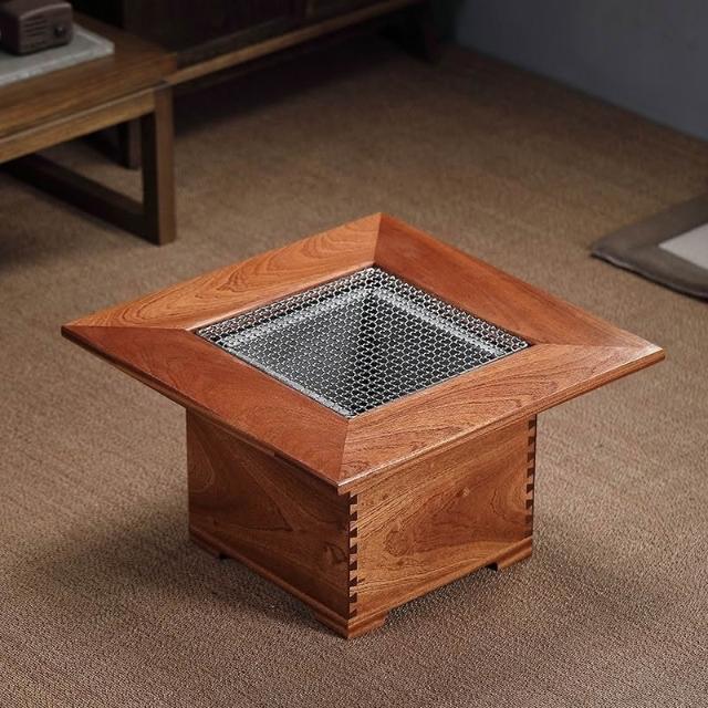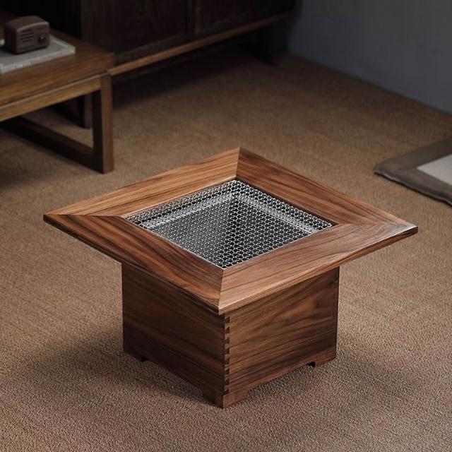 北美黑胡桃木圍爐茶幾 茶桌 炭火茶桌碳爐火缽小茶台實木家用煮茶泡茶台