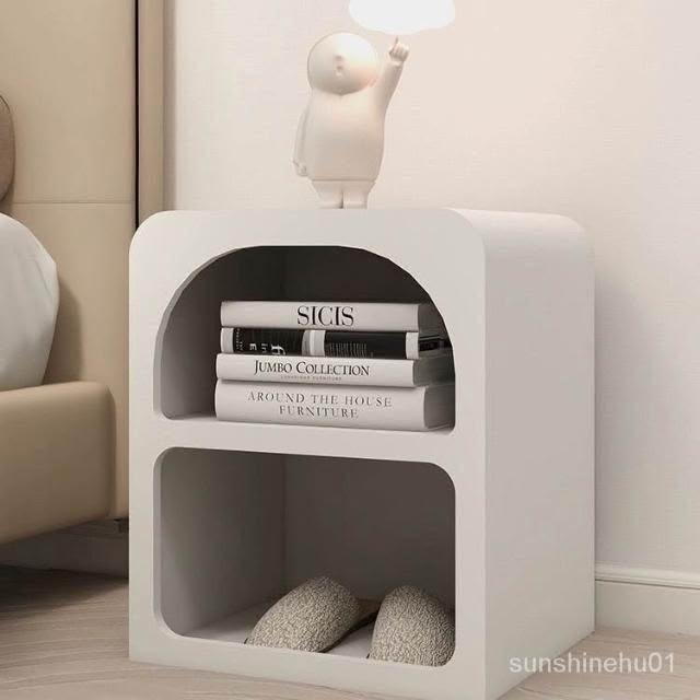 床頭櫃 北歐奶油風收納櫃 設計師款 收納櫃 網紅白色法式百搭床邊櫃 收納櫃 櫃子
