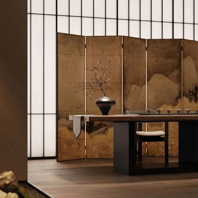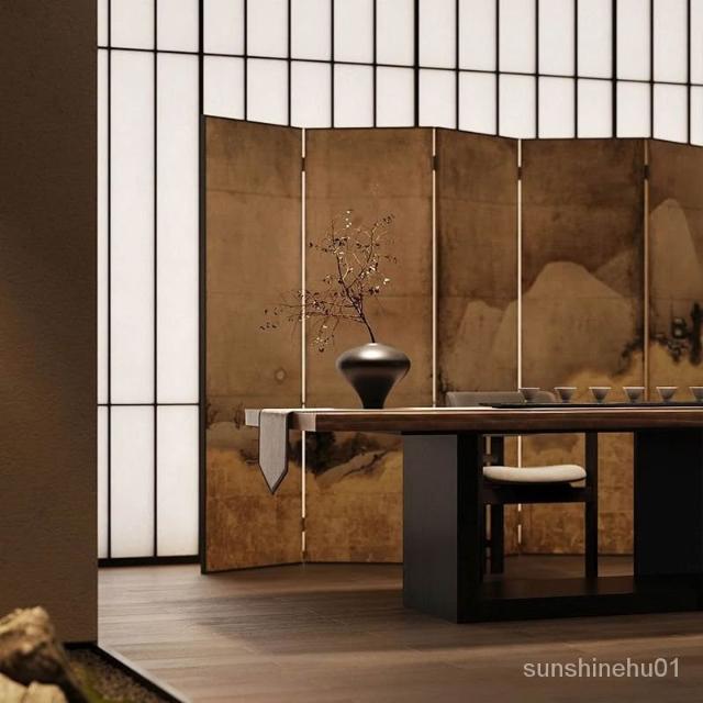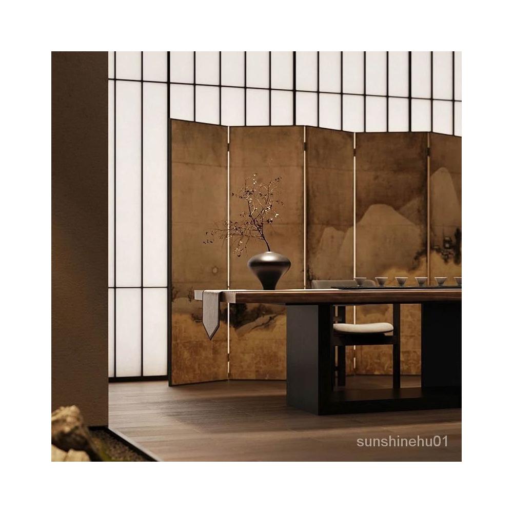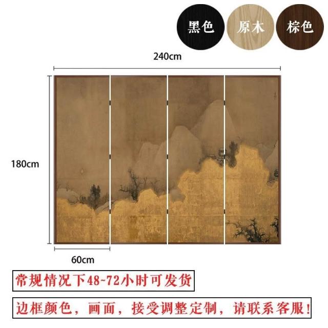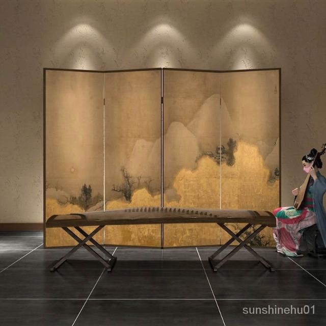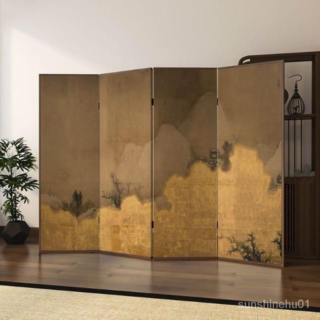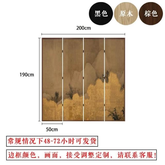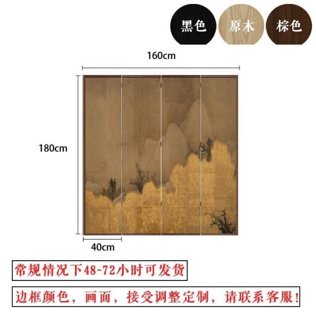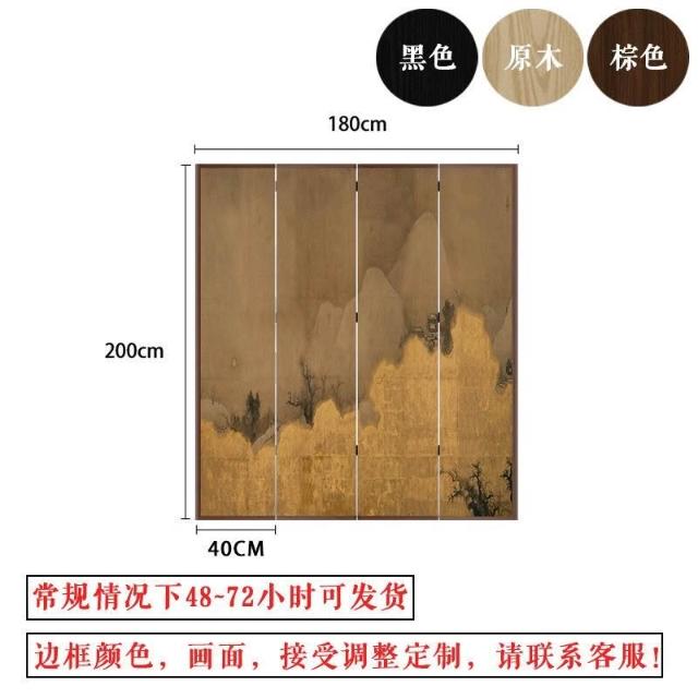 新中式實木折疊移動抽象古畵山水折屏屏風隔斷客廳玄關辦公背景墻