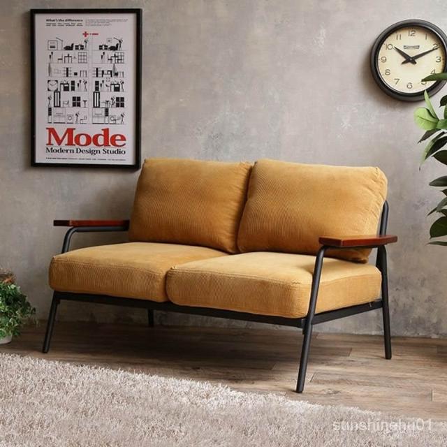 可開發票 日式複古loft工業風鐵藝雙人沙發小戶型美式網紅咖啡廳沙發椅子