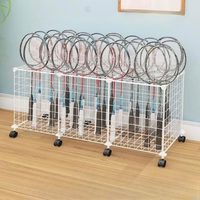 可開發票 免運羽毛球拍收納架學校置物架球桿展示架家用魚竿網球拍放置架子帶輪