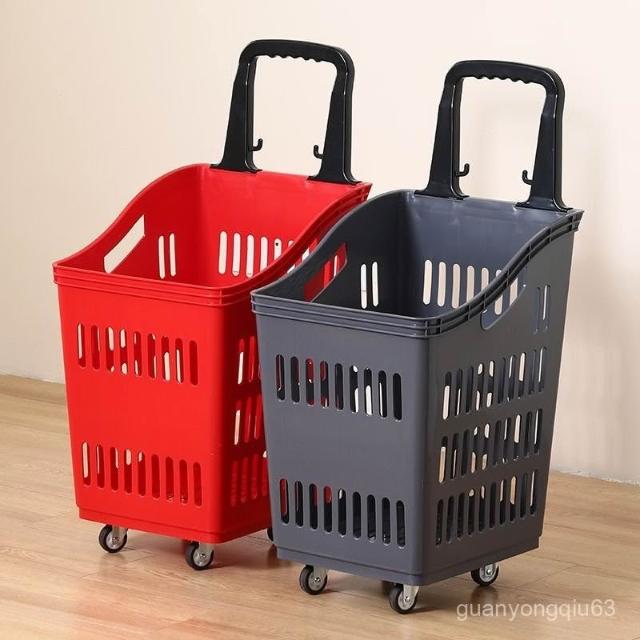 可開發票 免運超大超市購物籃手提籃塑料籃手拉桿帶輪加厚商場購物車買菜籃子