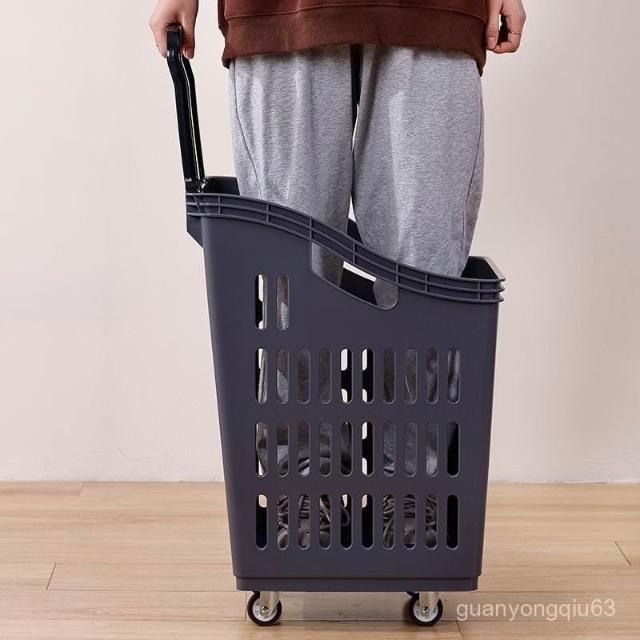 可開發票 免運超大超市購物籃手提籃塑料籃手拉桿帶輪加厚商場購物車買菜籃子