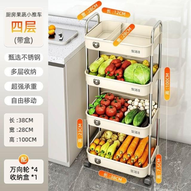 可開發票 免運菜籃子置物架廚房多功能小推車置物架落地多層收納放果蔬