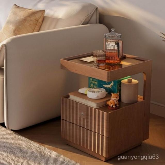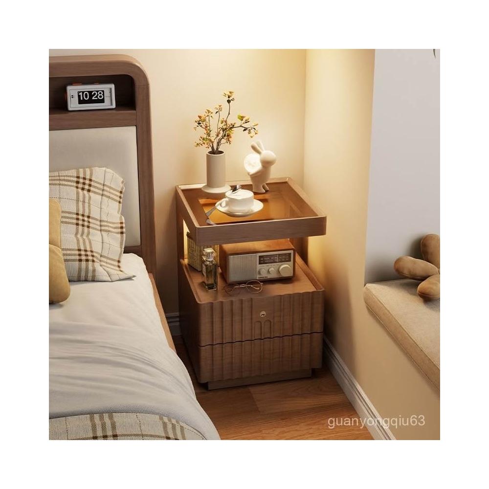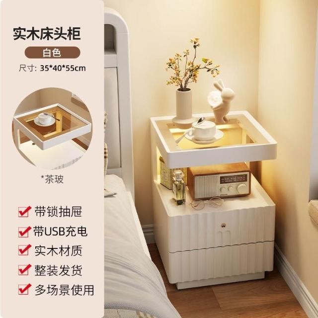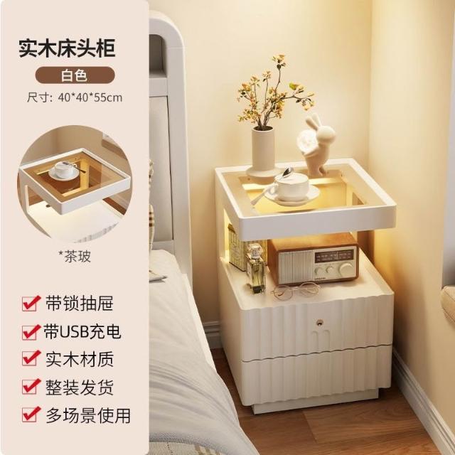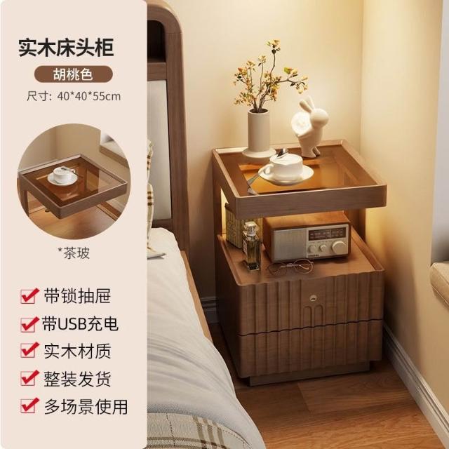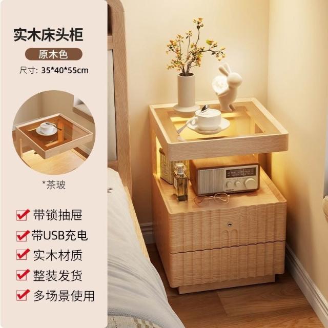 可開發票 實木床頭櫃簡約現代家用臥室帶鎖儲物櫃小型床邊置物架簡易收納櫃