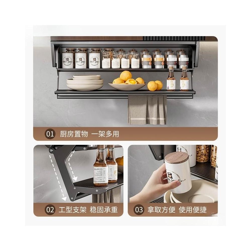 可開發票 免運調味料品收納架下拉式吊櫃折疊儲物架碗碟備菜神器太空艙拉籃