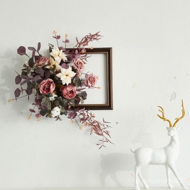 可開發票 免運仿真花複古法式玫瑰創意壁掛假花藝相框擺件店鋪墻麵裝飾攝影道具