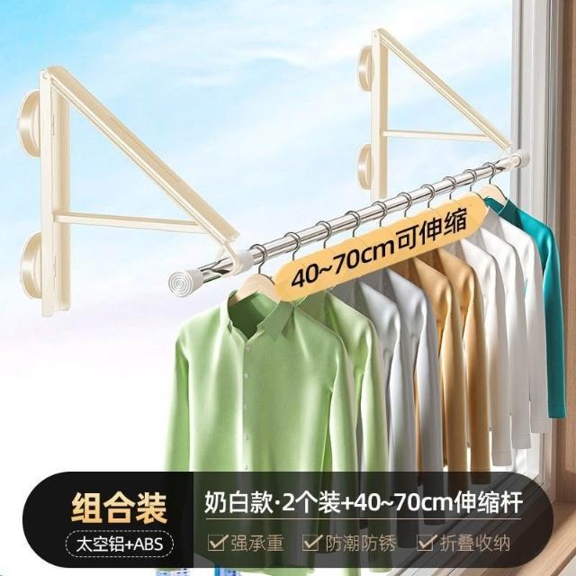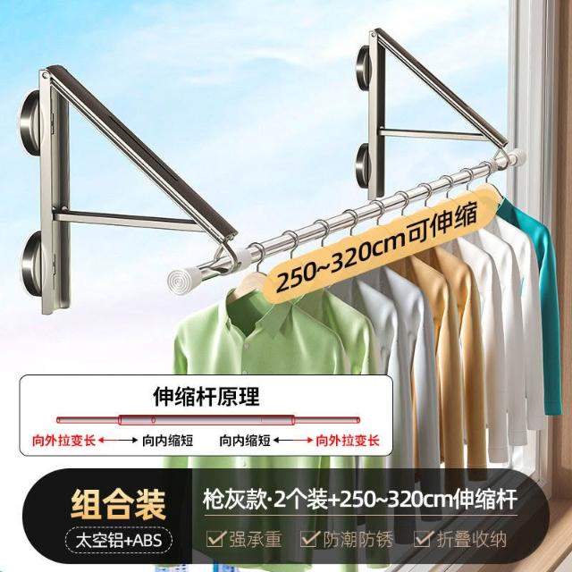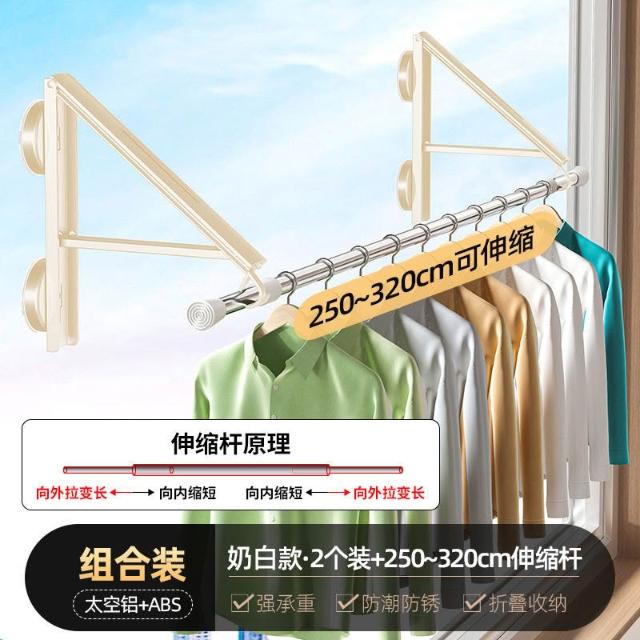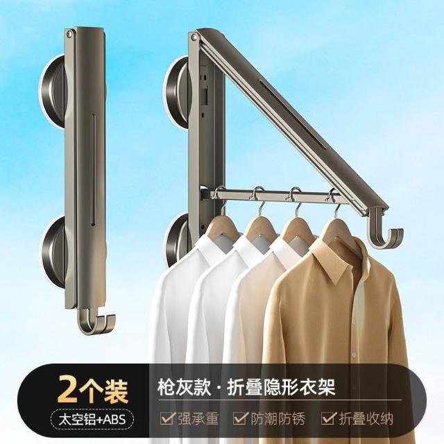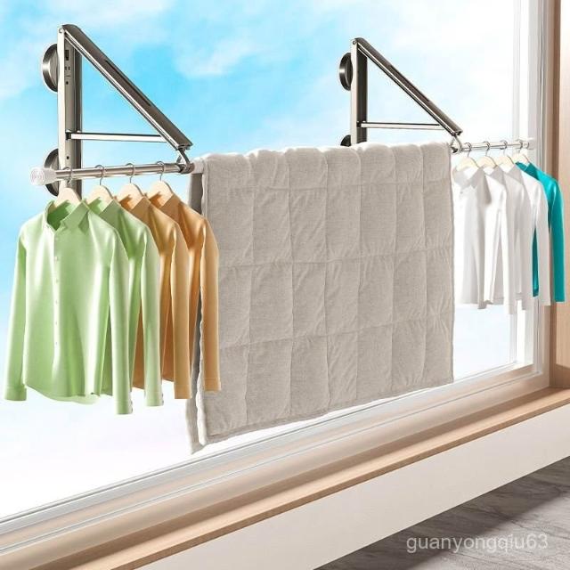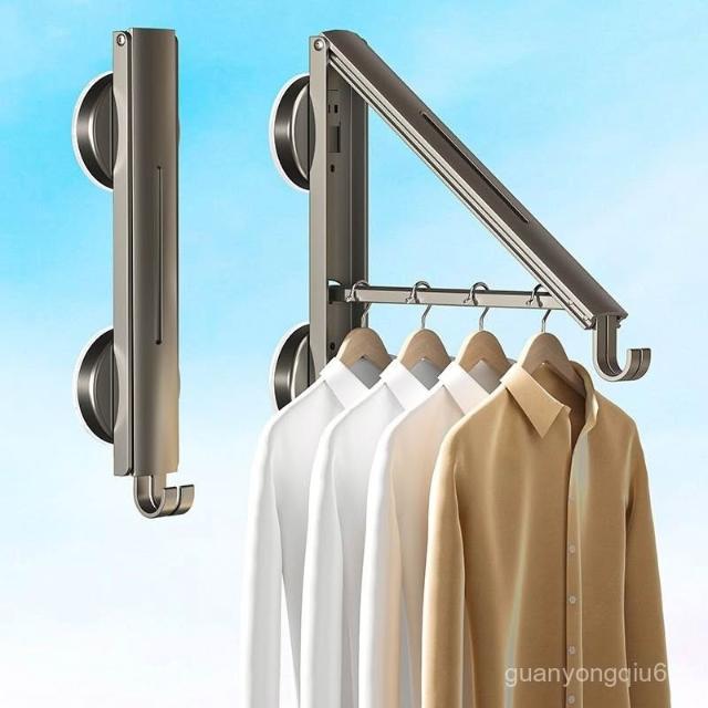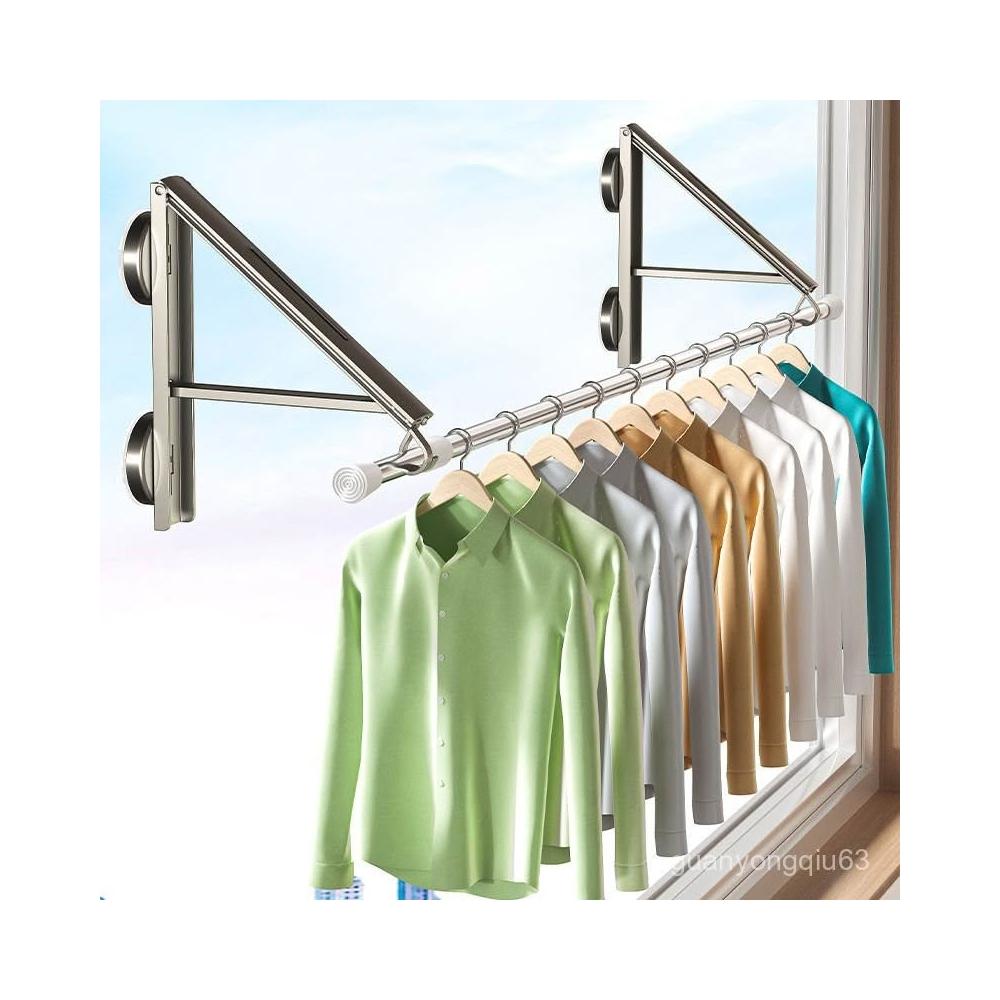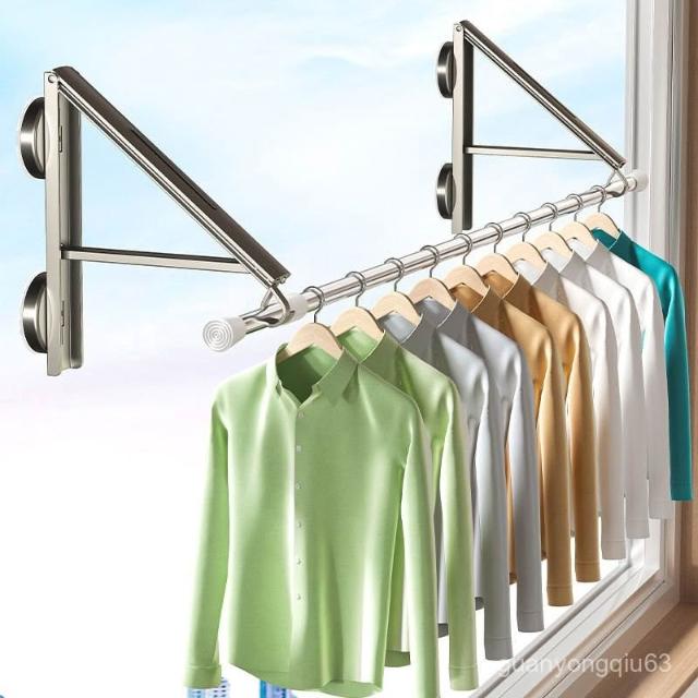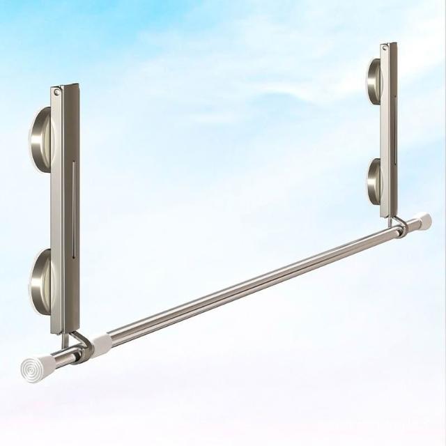 可開發票 免運吸盤晾衣架隱形折疊陽臺晾衣神器家用免打孔伸縮晾衣桿飄窗室內