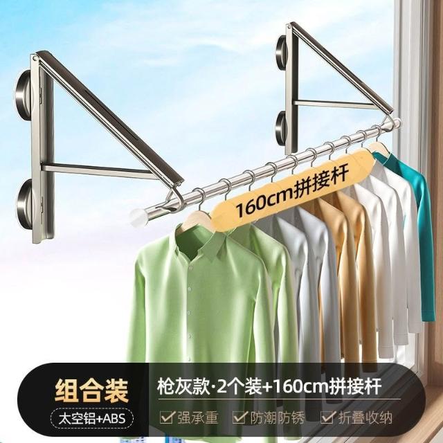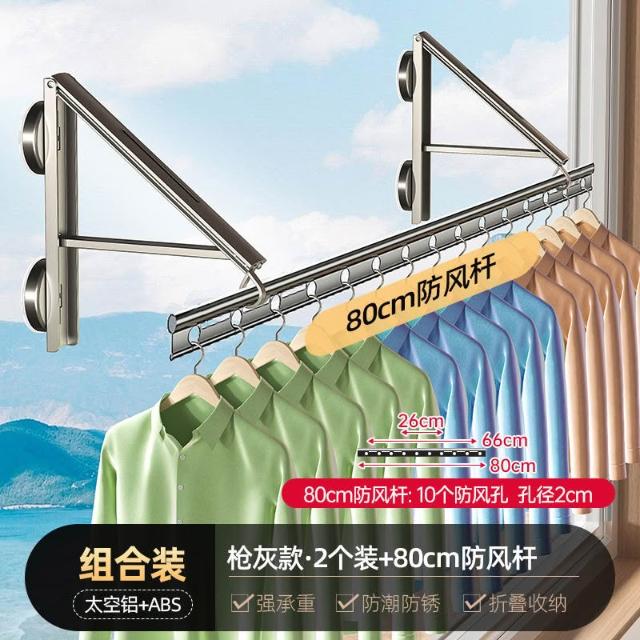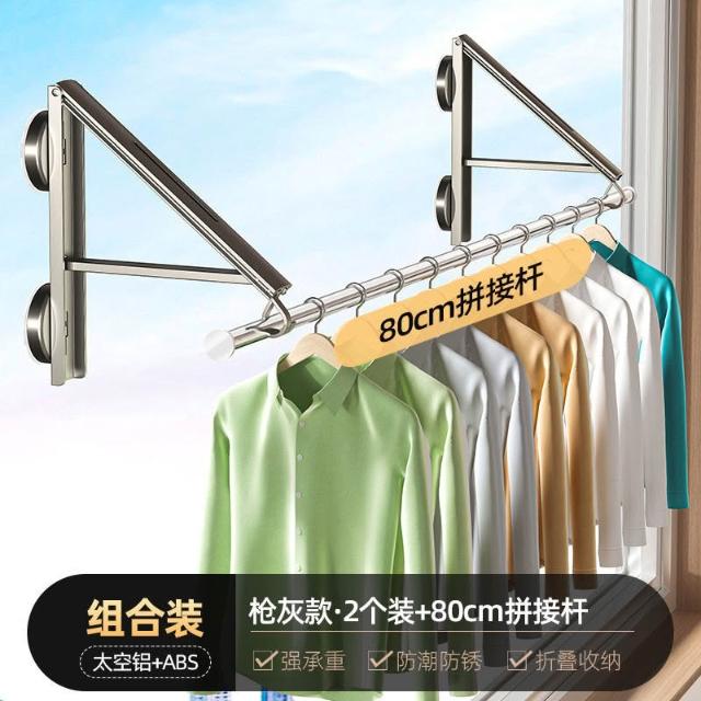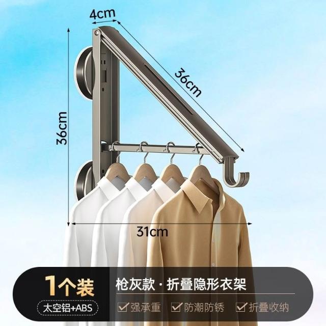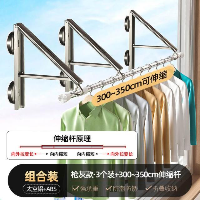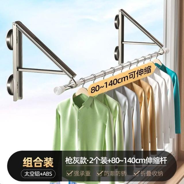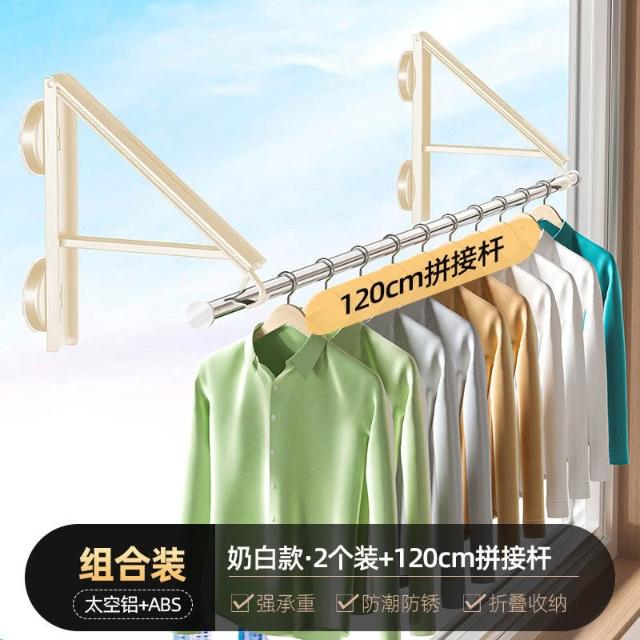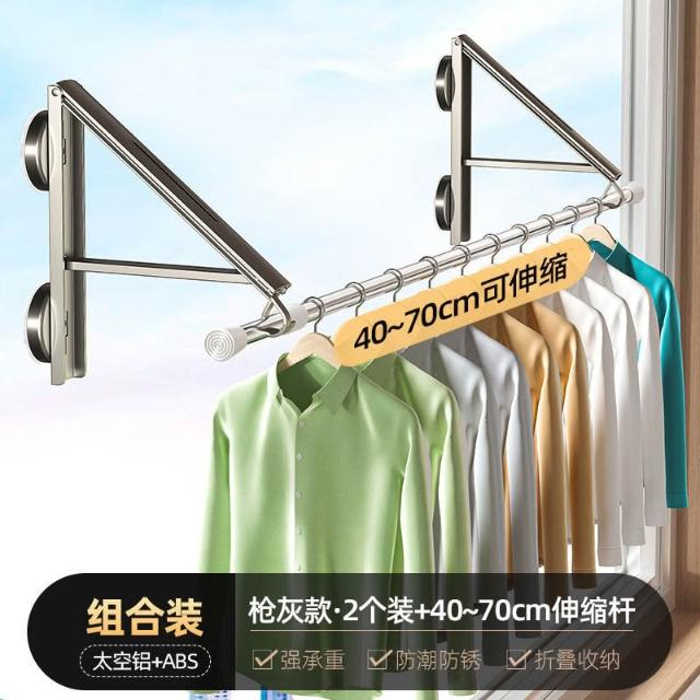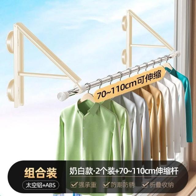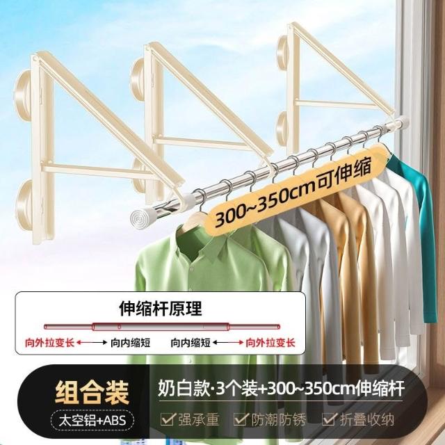 可開發票 免運吸盤晾衣架隱形折疊陽臺晾衣神器家用免打孔伸縮晾衣桿飄窗室內