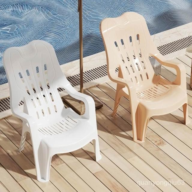 可開發票 免運塑料加厚靠背沙灘椅躺椅大排檔椅塑膠高背扶手椅家用成人熟膠椅子