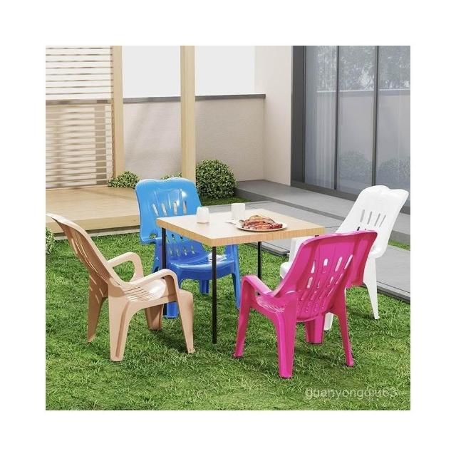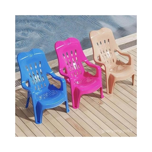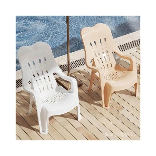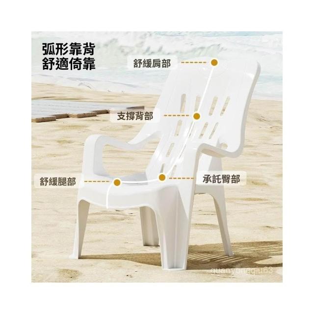 可開發票 免運塑料加厚靠背沙灘椅躺椅大排檔椅塑膠高背扶手椅家用成人熟膠椅子
