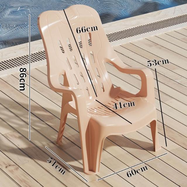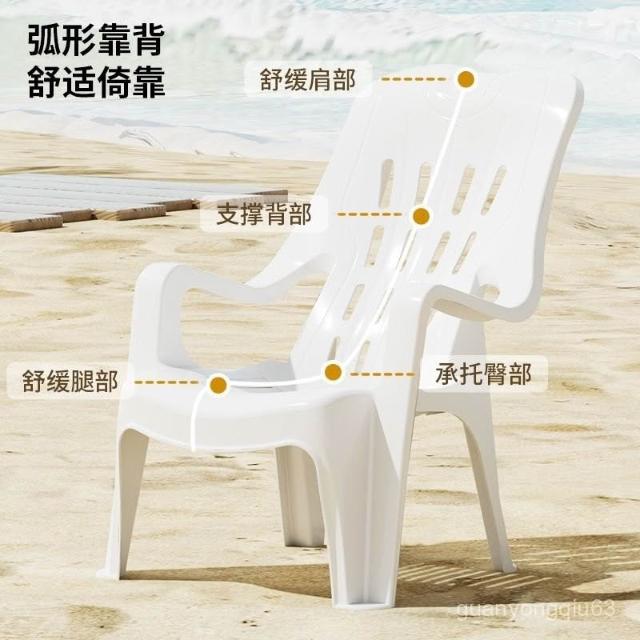可開發票 免運塑料加厚靠背沙灘椅躺椅大排檔椅塑膠高背扶手椅家用成人熟膠椅子