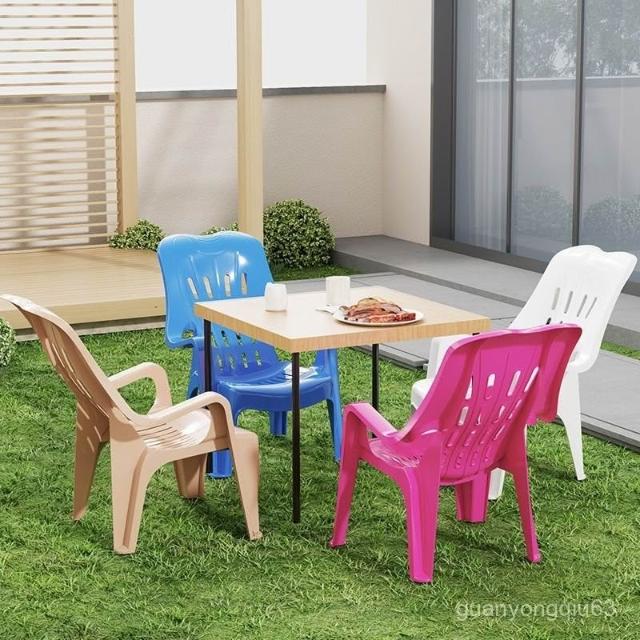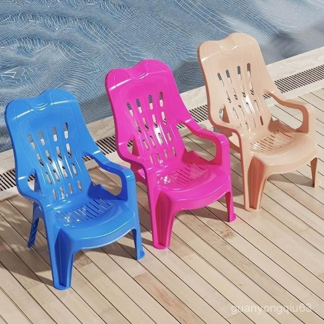 可開發票 免運塑料加厚靠背沙灘椅躺椅大排檔椅塑膠高背扶手椅家用成人熟膠椅子