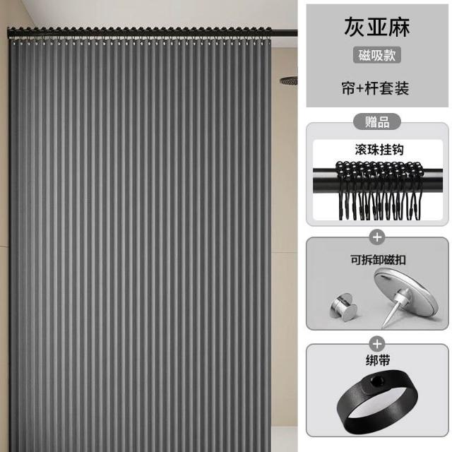 可開發票 免運浴室隱形折疊磁吸式浴簾套裝免打孔隱形防水簾衛生間隔斷幹濕分離