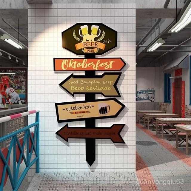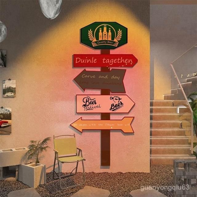 可開發票 免運酒吧墻麵裝飾品酒館啤酒屋店鋪背景氛圍布置複古指路牌貼畵紙