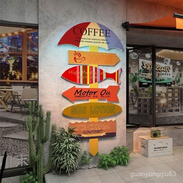 可開發票 免運酒吧墻麵裝飾品酒館啤酒屋店鋪背景氛圍布置複古指路牌貼畵紙