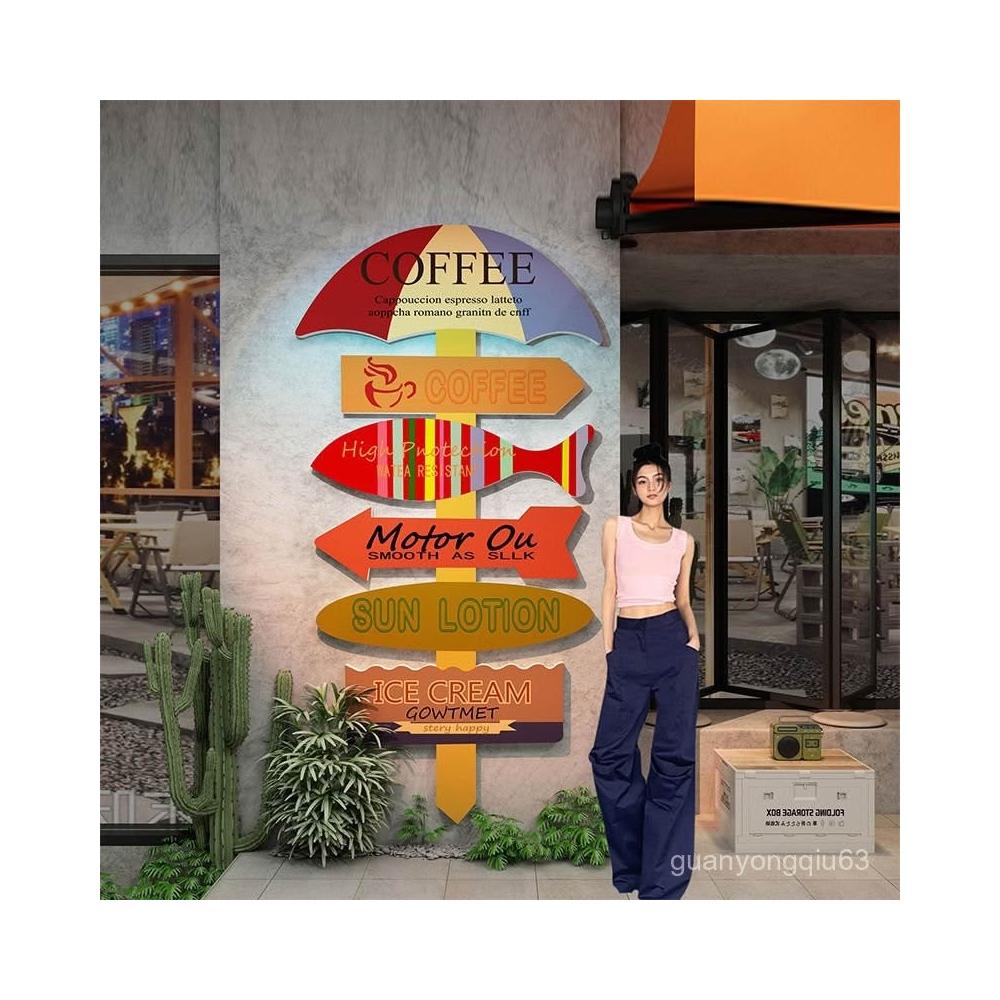 可開發票 免運酒吧墻麵裝飾品酒館啤酒屋店鋪背景氛圍布置複古指路牌貼畵紙