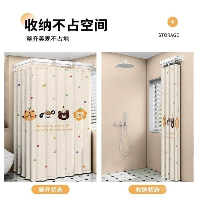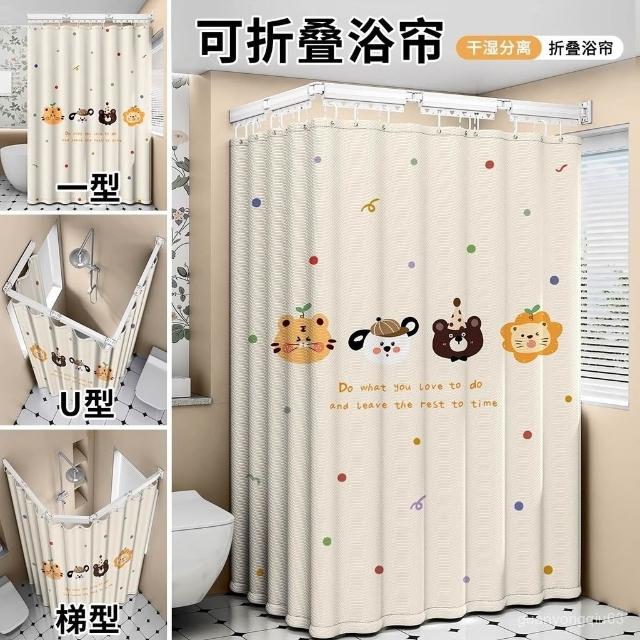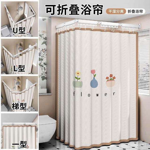 可開發票 免運隱形折疊浴簾免打孔浴室洗澡隔斷衛生間幹濕分離淋浴防水擋水簾子