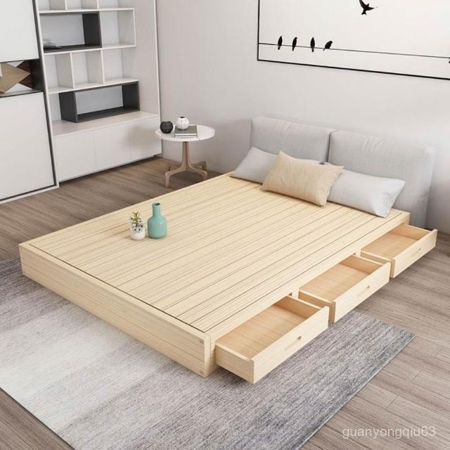 可開發票 免運實木硬闆雙人床排骨架落地鋪床日式矮床貼地臺榻榻米床架子無床頭
