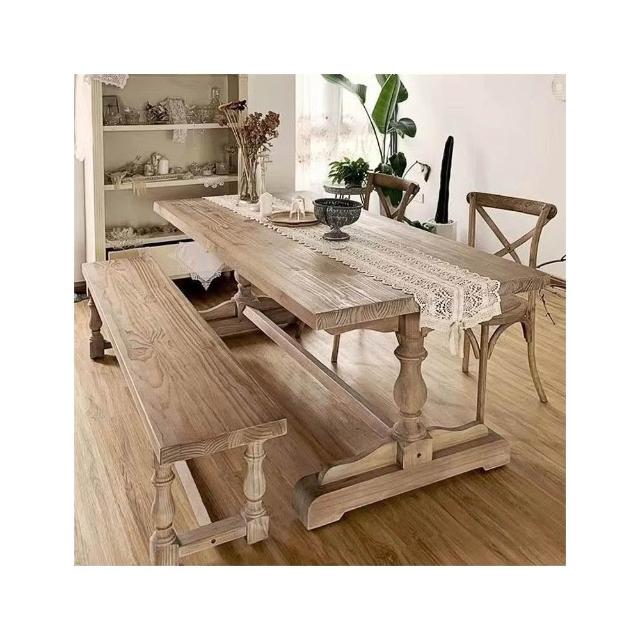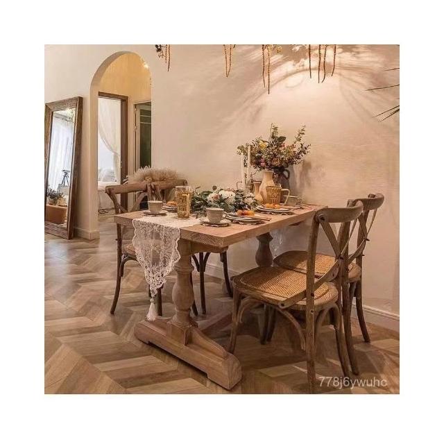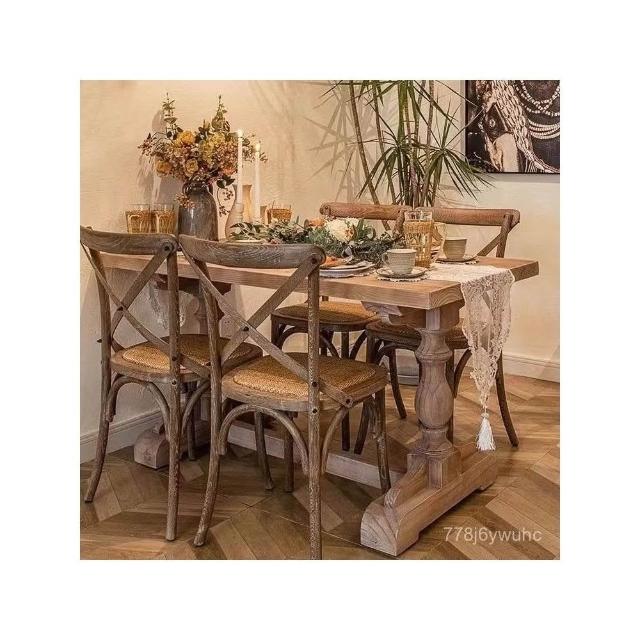 免運🔥 實木桌 法式鄉村實木複古餐桌家用飯桌美式餐廳原木桌子羅馬柱長方形長桌 書桌 餐桌 辦公桌 電腦桌 學習桌