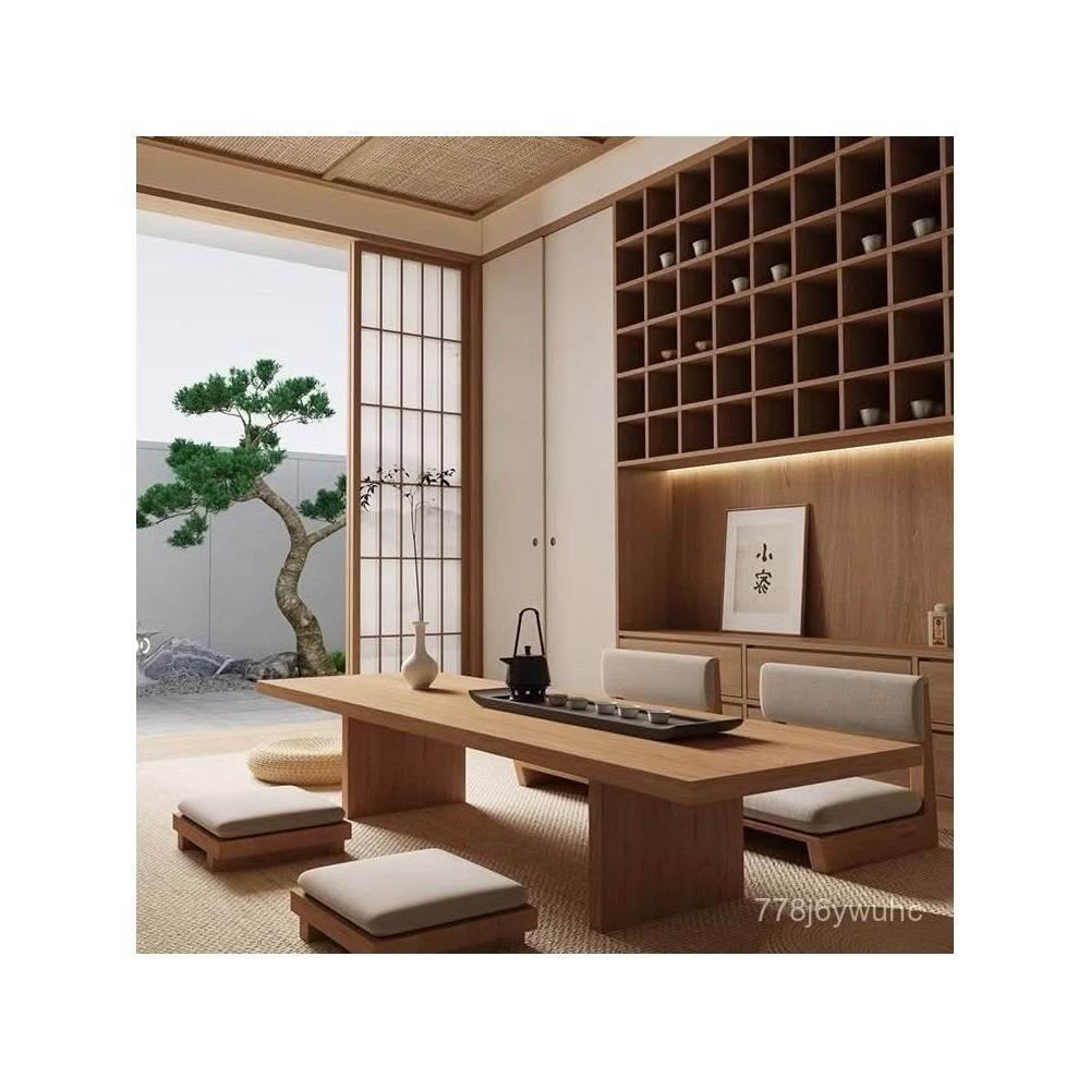 免運🚚 侘寂風原木日式茶幾禪意茶室榻榻米茶桌飄窗茶臺民宿實木炕桌矮桌 茶幾 茶桌 餐桌 桌子 置物架 層架 GM2W