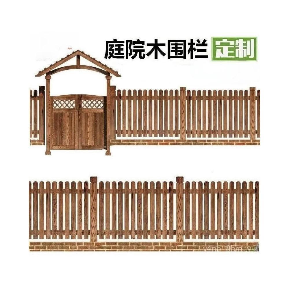 戶外防腐實木柵欄圍欄庭院別墅籬笆圍墻菜園碳化護欄家用隔斷定製 KRID