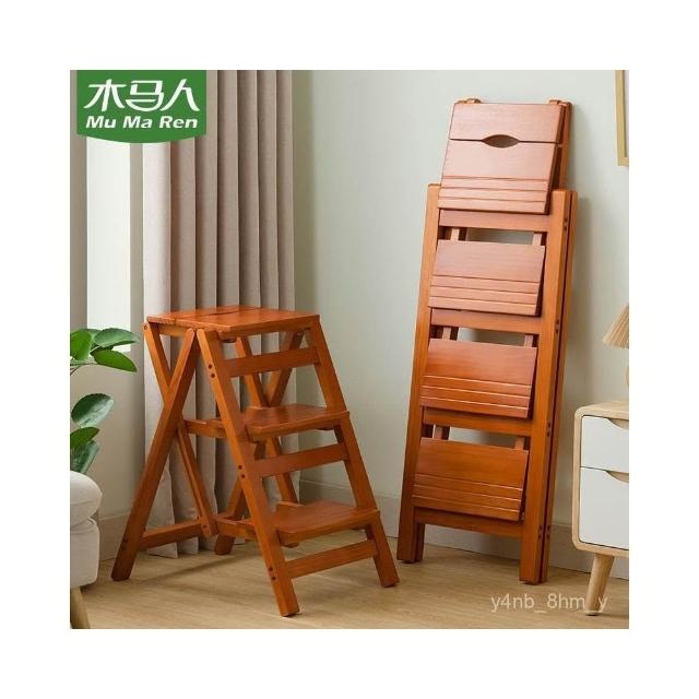 工廠直銷 木馬人實木折疊梯椅家用梯子椅子兩用梯凳室內多功能登高踏闆樓梯 4WFE