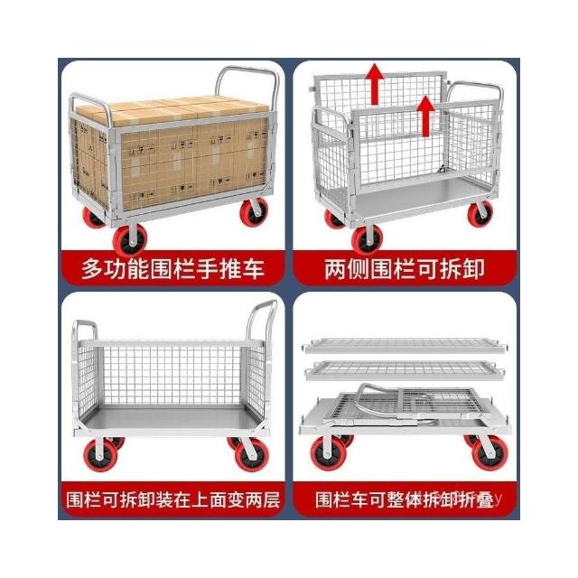 帶圍欄手推車靜音小推車擺地攤分揀車便攜小拉車多功能平闆車