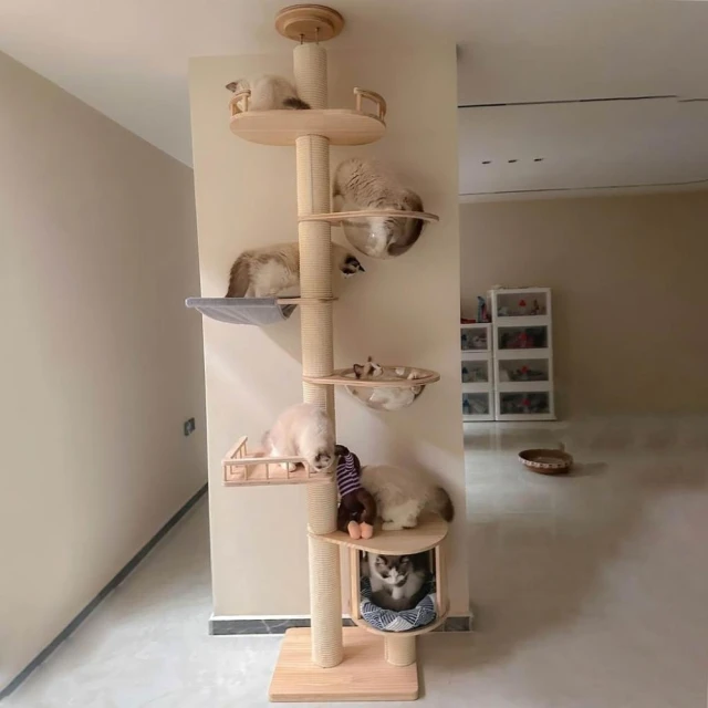 工廠直銷 可定製頂天立地貓跳台 貓爬架 貓抓柱 實木貓爬架通天柱貓咪貓窩貓樹一體大型不佔地貓屋貓小戶型別墅 太空艙貓窩