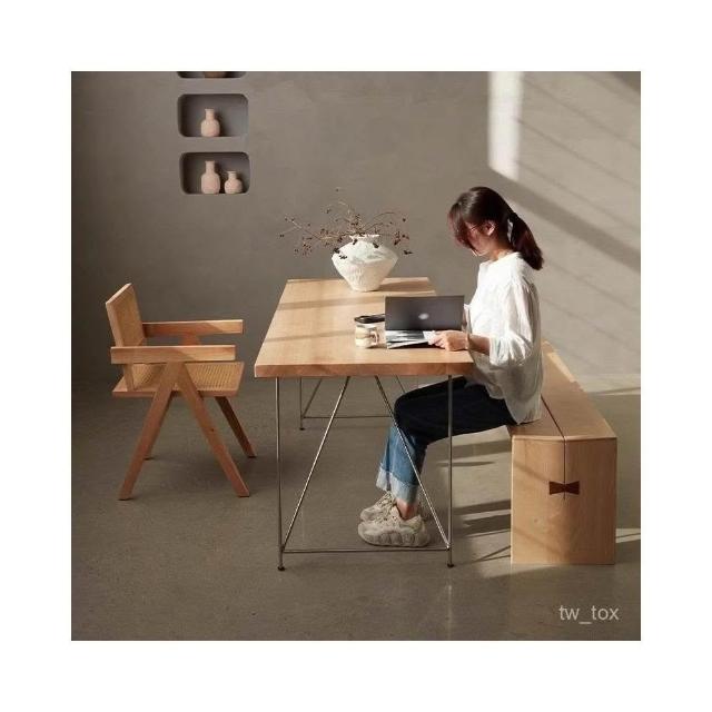侘寂風工作會議桌長桌創意設計感辦公桌書桌簡約現代實木餐桌茶桌 Y32O