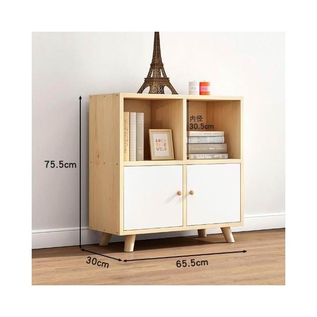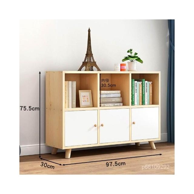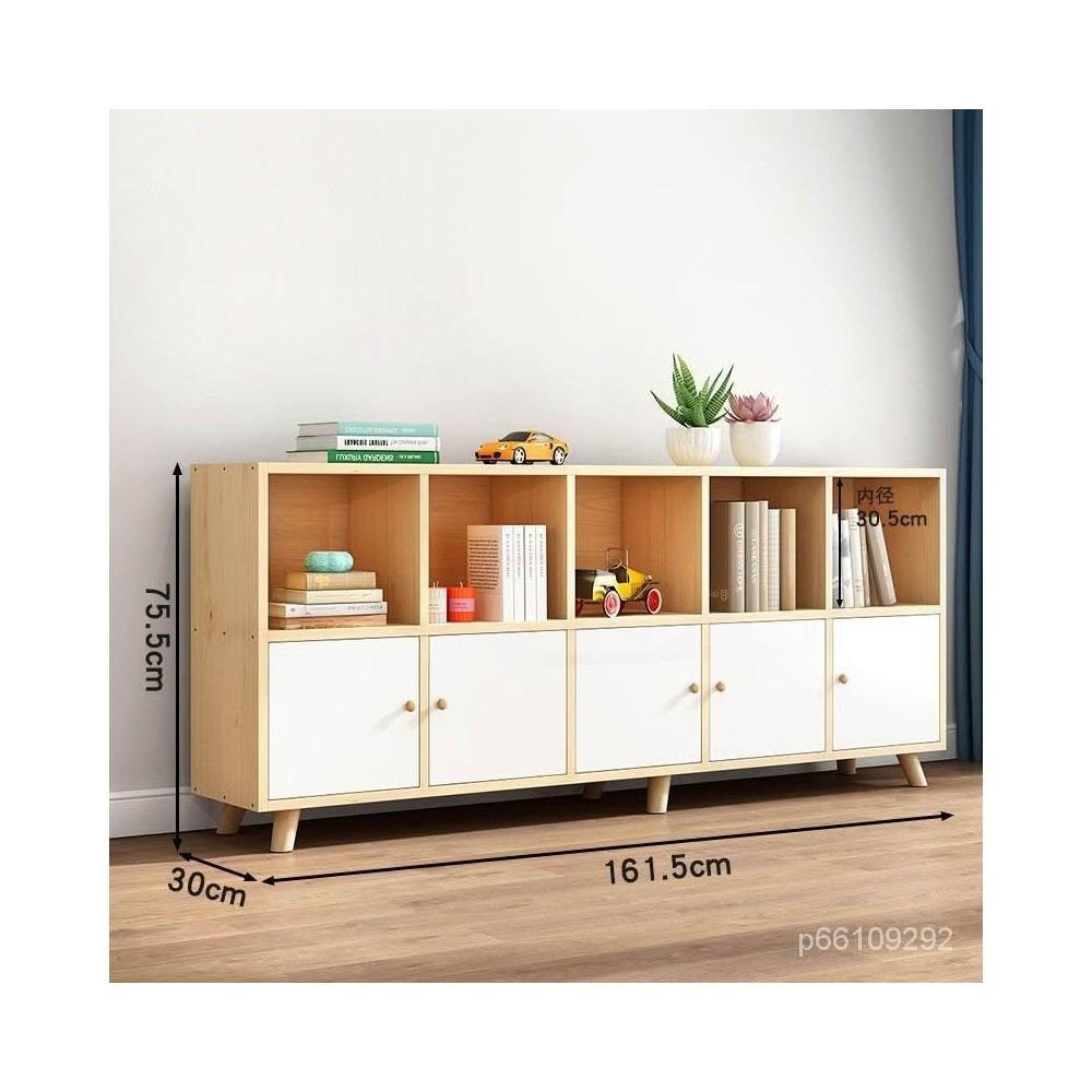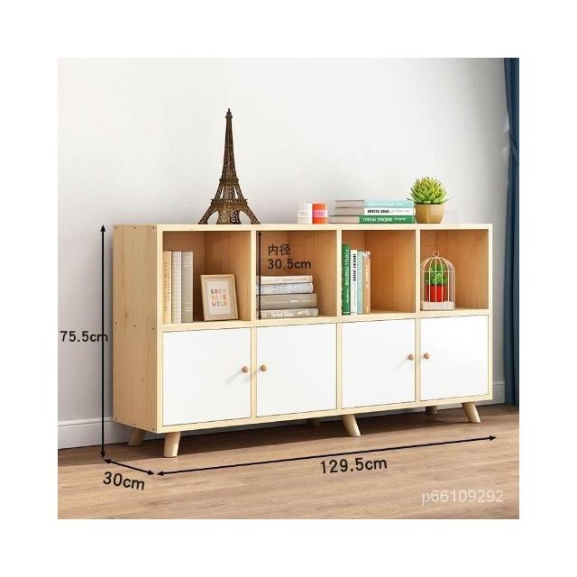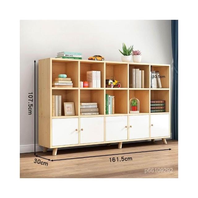 免運 可開發票 實木書櫃收納櫃一體自由組閤格子櫃帶門簡約鬆木矮書架置物架