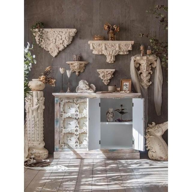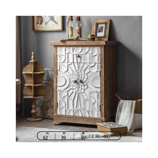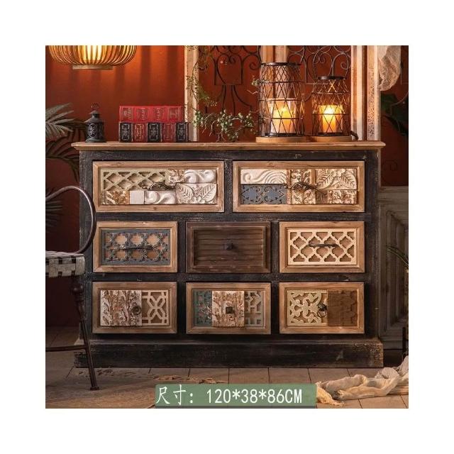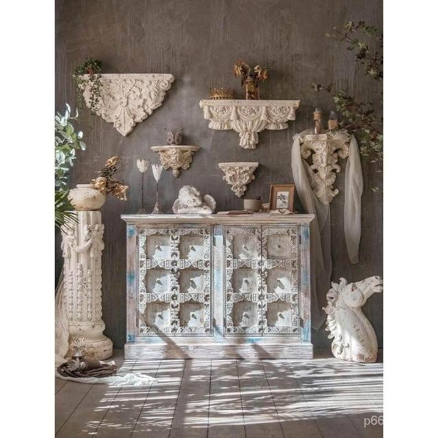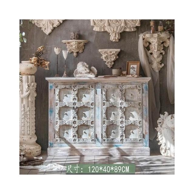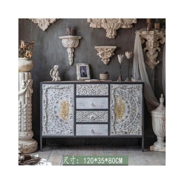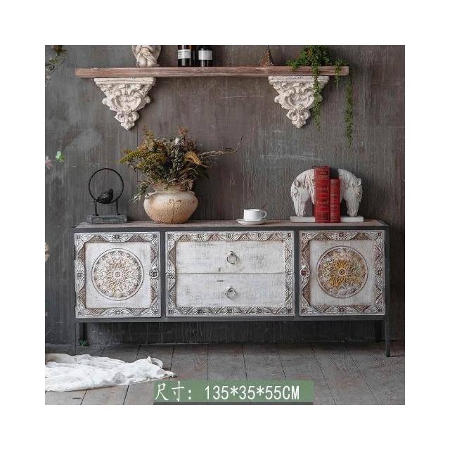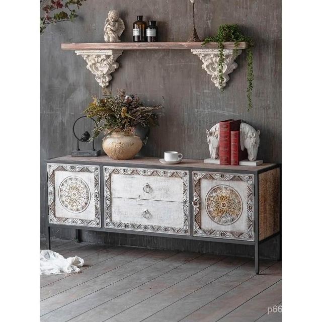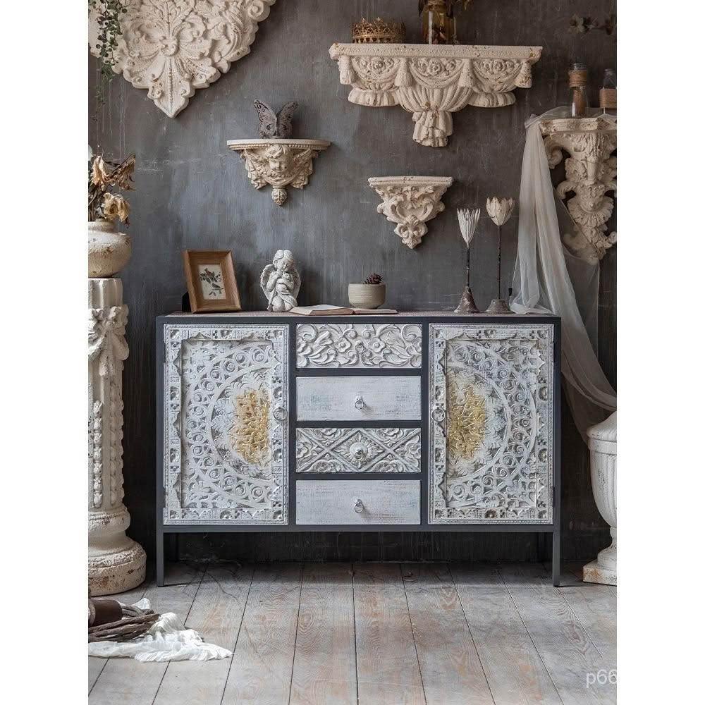 開發票 工業風複古玄關櫃鐵藝餐邊櫃複古鵰花儲物櫃客廳邊櫃美式裝飾櫃子