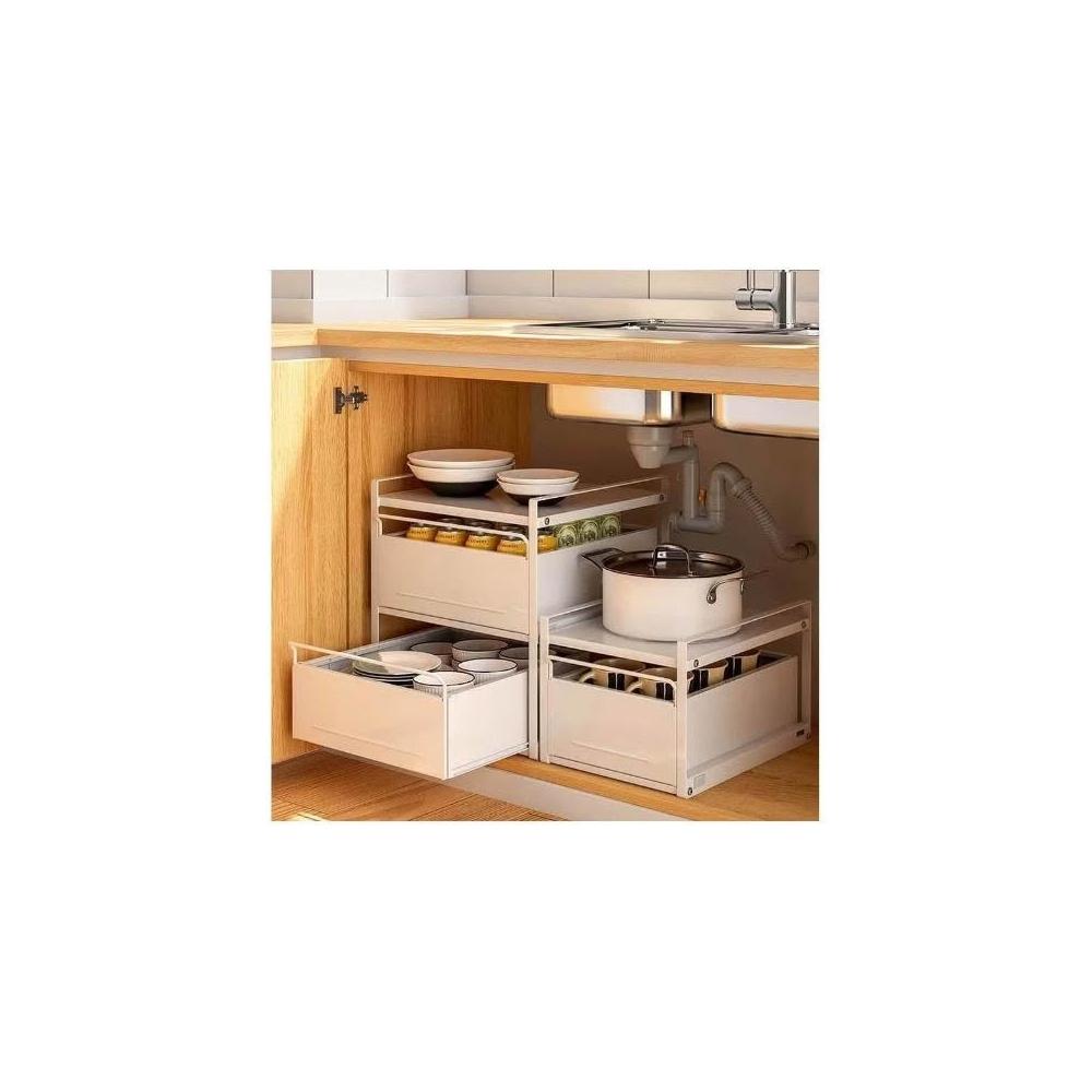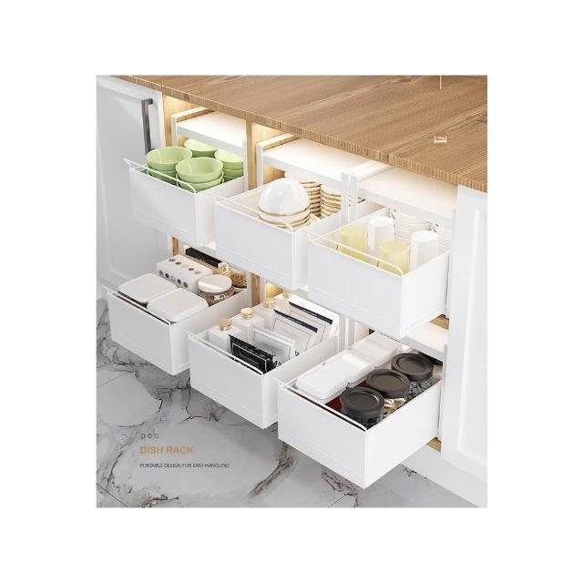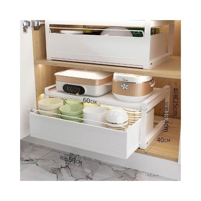 廚房櫥櫃拉籃抽屜式隔闆分層架滑軌調味碗盤抽拉收納盒碗碟置物架