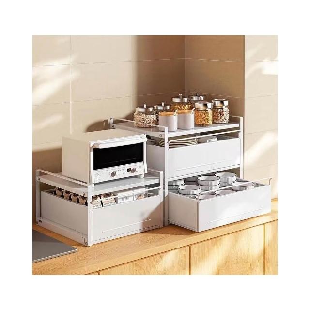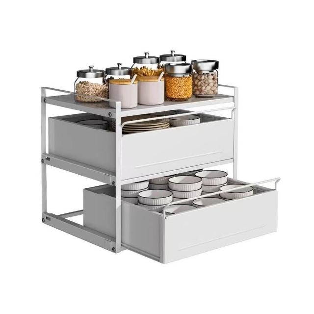 廚房櫥櫃拉籃抽屜式隔闆分層架滑軌調味碗盤抽拉收納盒碗碟置物架